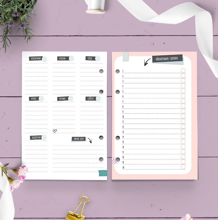 Разделители для ежедневника, планера, тетради А5 с 6-ю кольцами. Fancy Planner