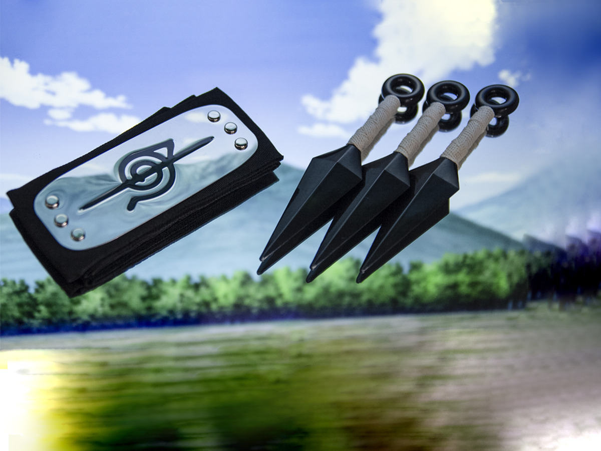 Набор Наруто 3 кинжала + повязка отступника / Naruto