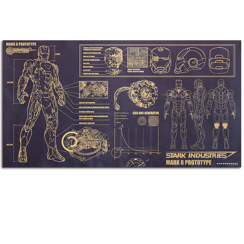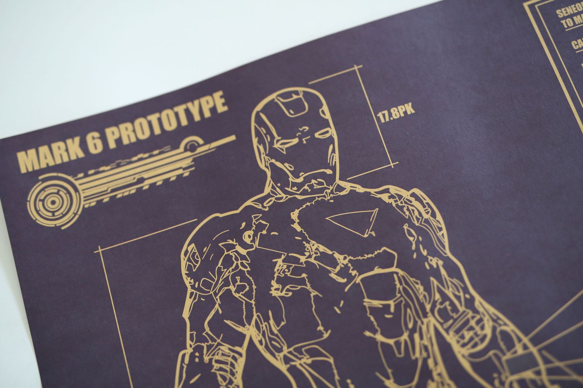 Постер из крафт-бумаги Чертёж костюма "Железный человек" / "Iron Man"