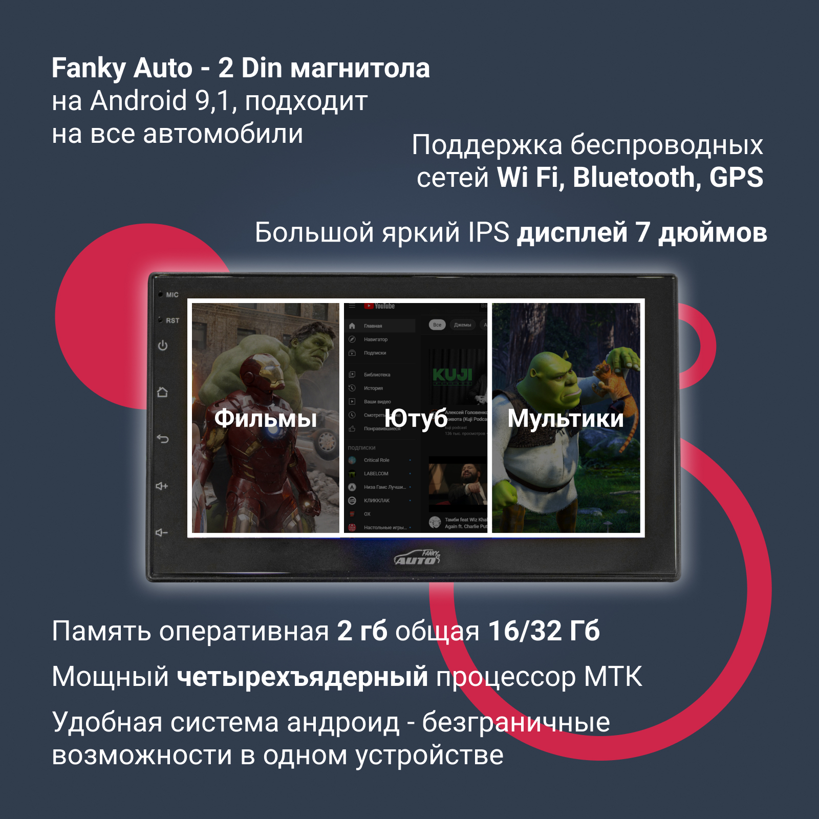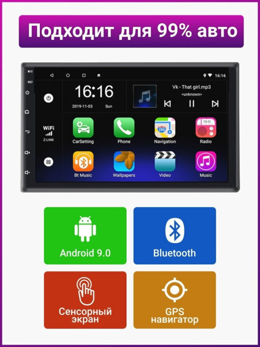 Автомагнитола / магнитола 2 din / автомагнитола 2 din / на Android / с bluetooth, Wi-Fi, GPS