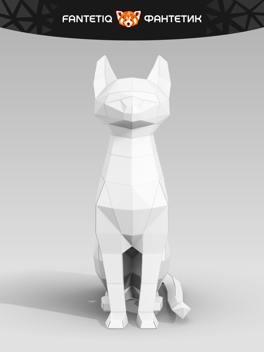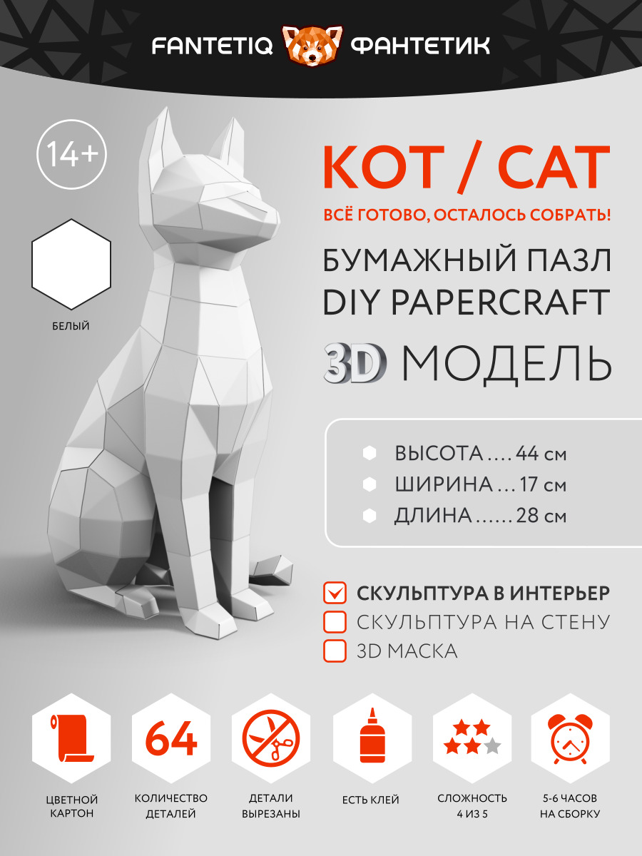 3D фигура оригами для взрослых ножницы не нужны КОТ Белый