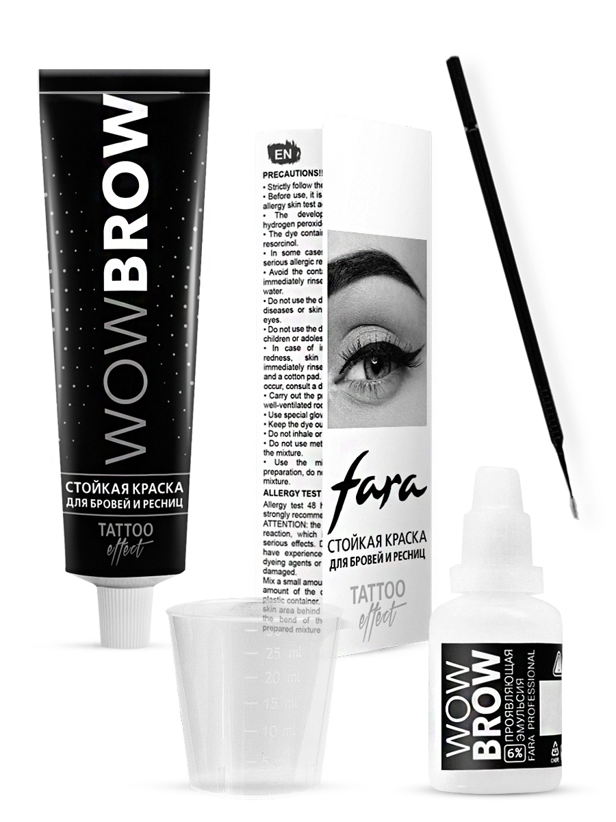 FARA Краска для бровей и ресниц FARA WOW с эффектом татуажа 2.0 black sapphire тон черный, 30 мл