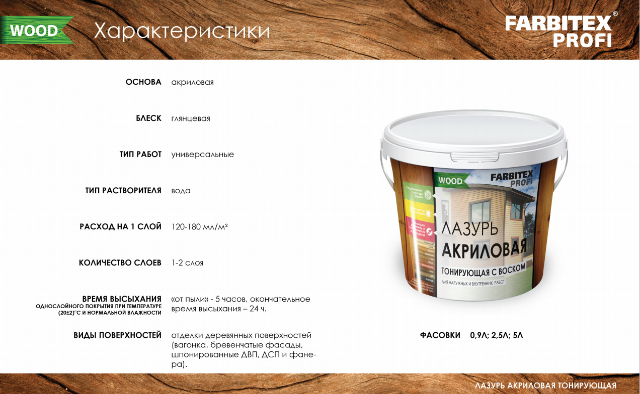 Лазурь акриловая для дерева защитно-красящая FARBITEX ПРОФИ WOOD (Артикул: 4300007754; Цвет: Рябина; Фасовка 5 л)