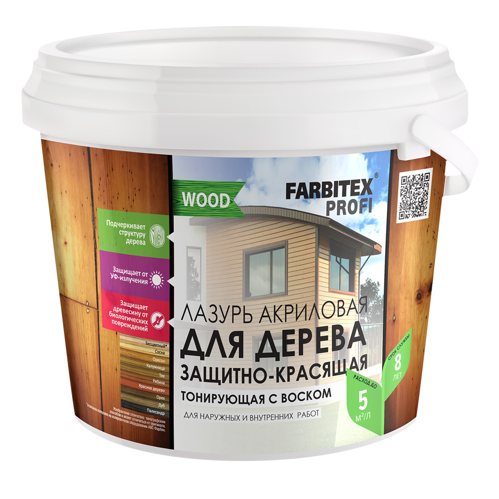 Лазурь акриловая для дерева защитно-красящая FARBITEX ПРОФИ WOOD (Артикул: 4300007738; Цвет: Красное дерево; Фасовка 0,9 л)