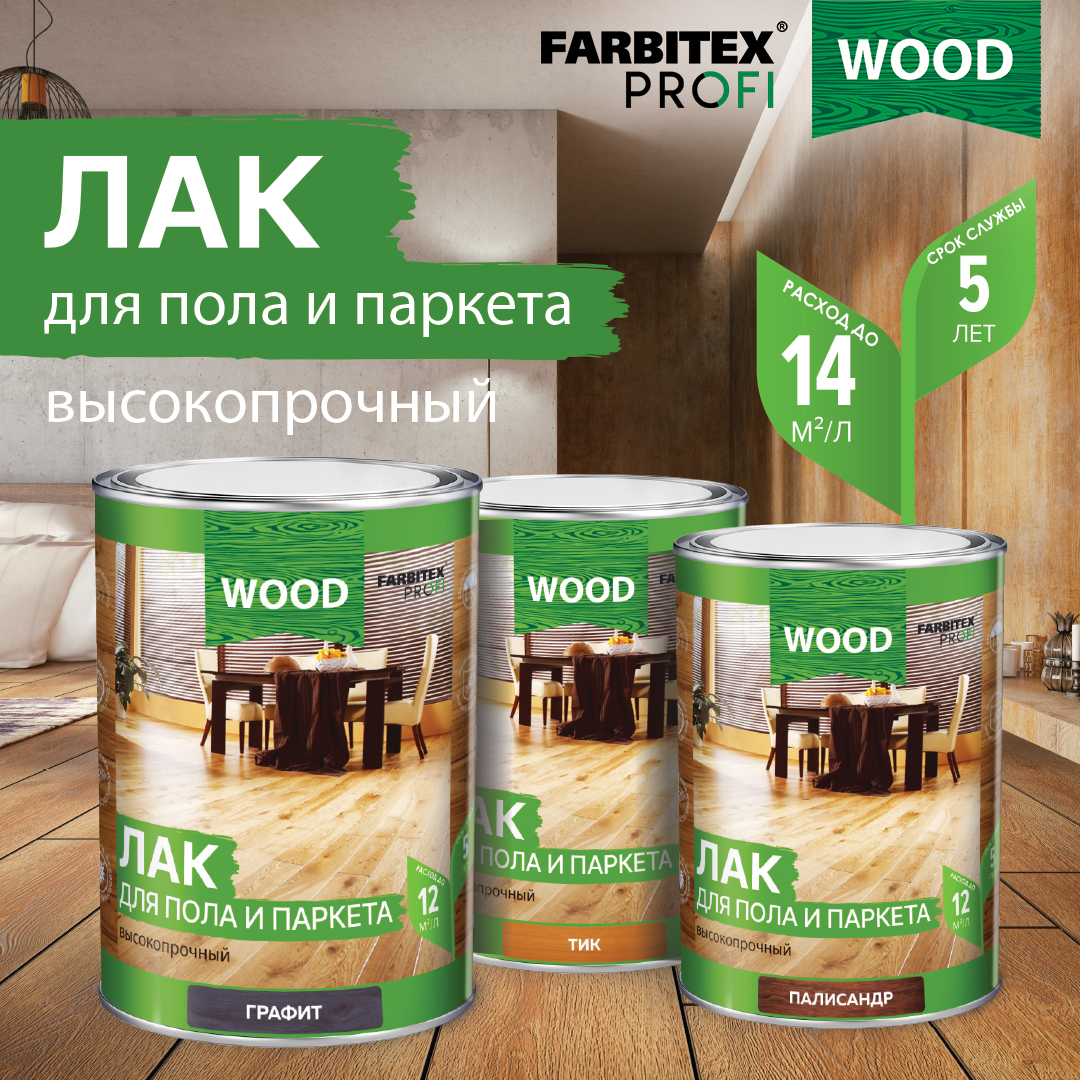 Лак паркетный алкидно-уретановый износостойкий высокоглянцевый FARBITEX PROFI WOOD (Артикул: 4300009062; Фасовка 2,7 л),высокопрочный для внутренних работ