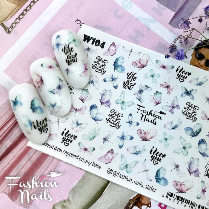 Fashion Nails Наклейки для ногтей водные / Слайдеры для маникюра / Слайдер для ногтей цветы, бабочки, весна-лето / дизайн для маникюра / дизайн для ногтей № W104