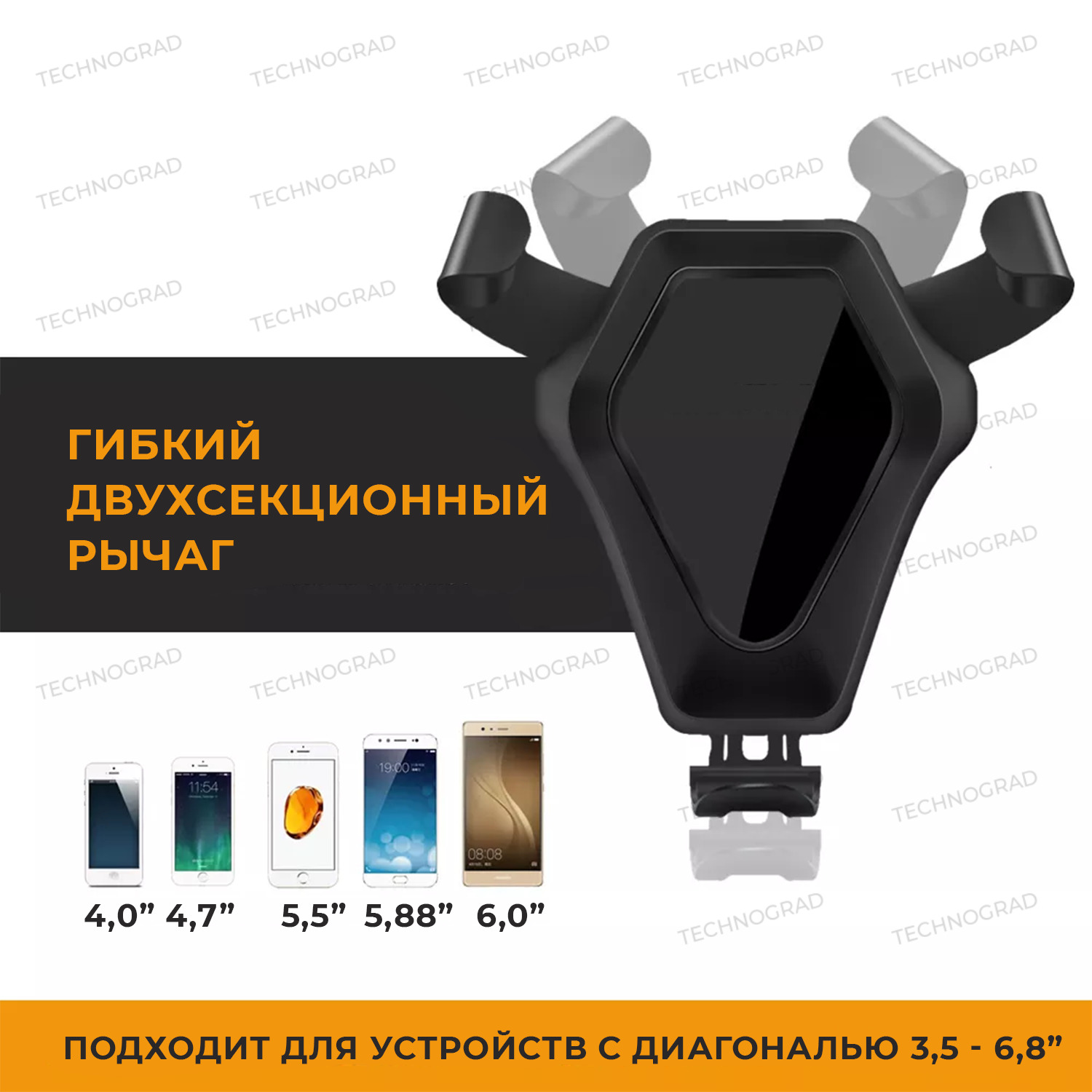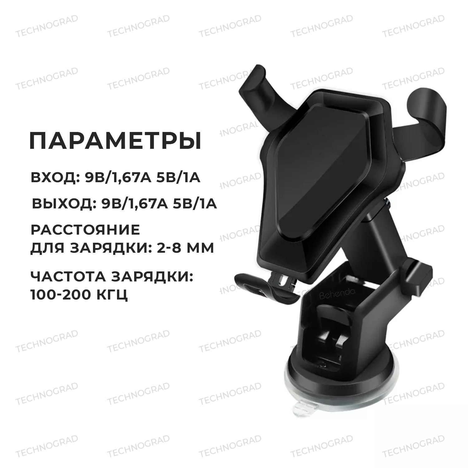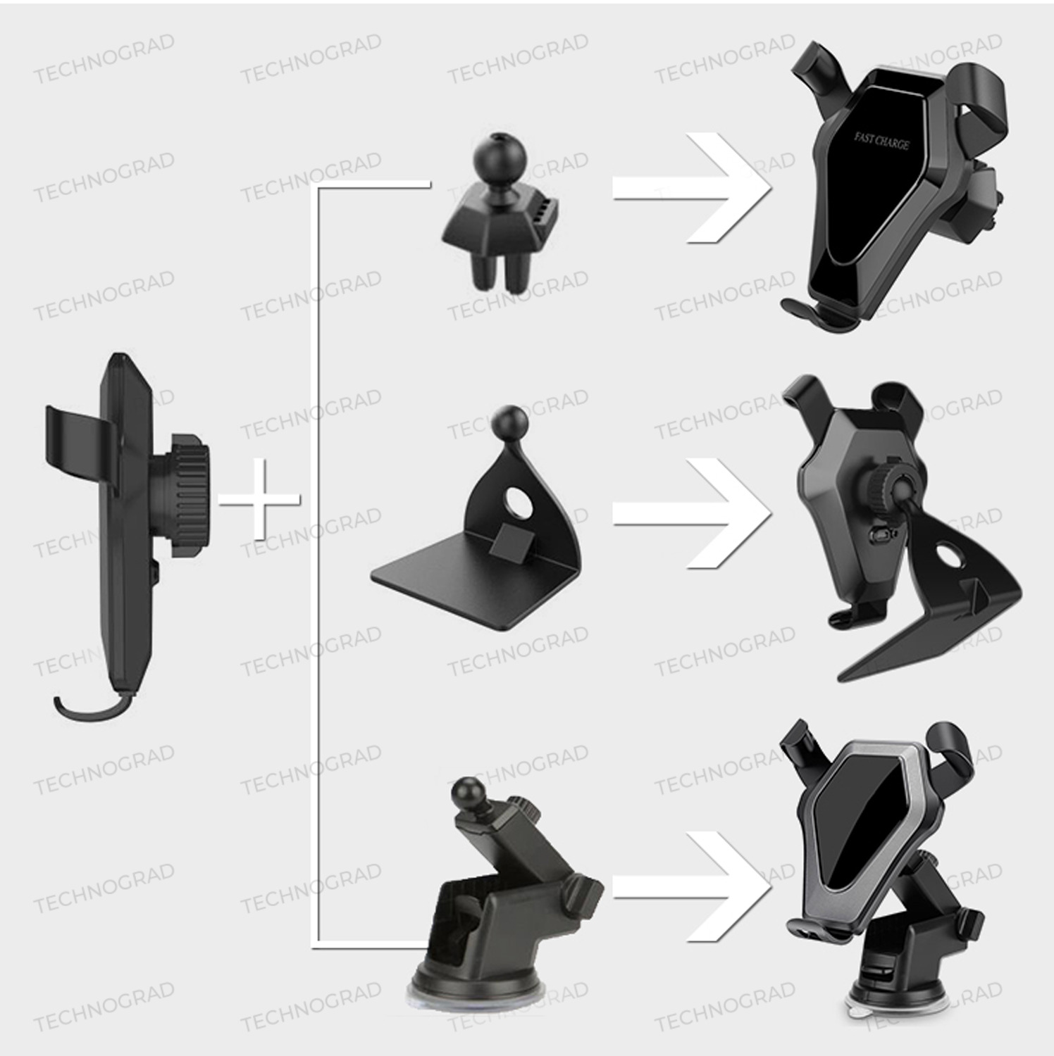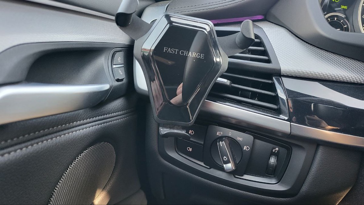 Автомобильный держатель для телефона с беспроводной зарядкой - Fast charge, черный