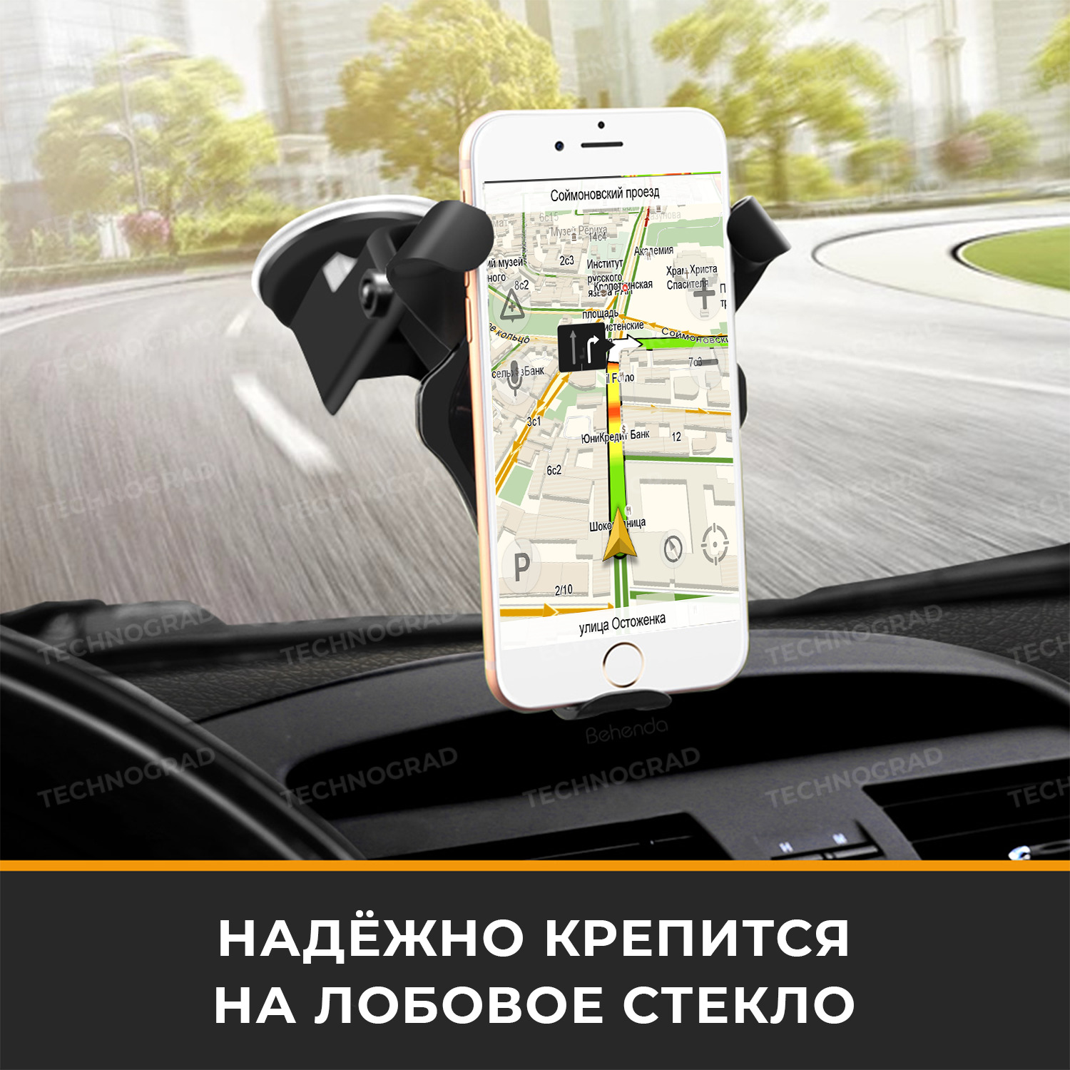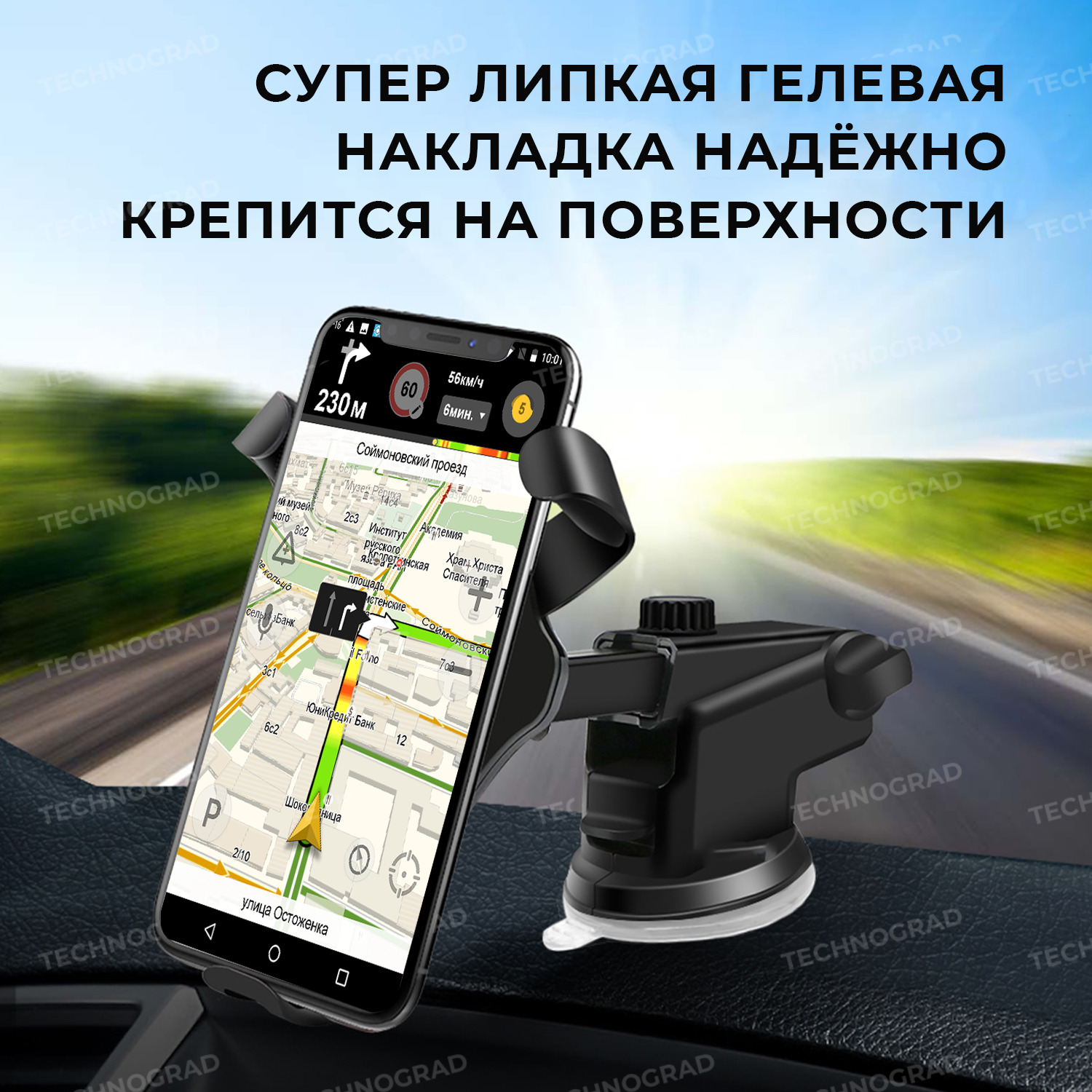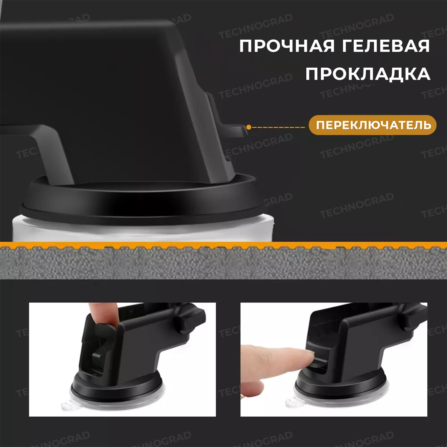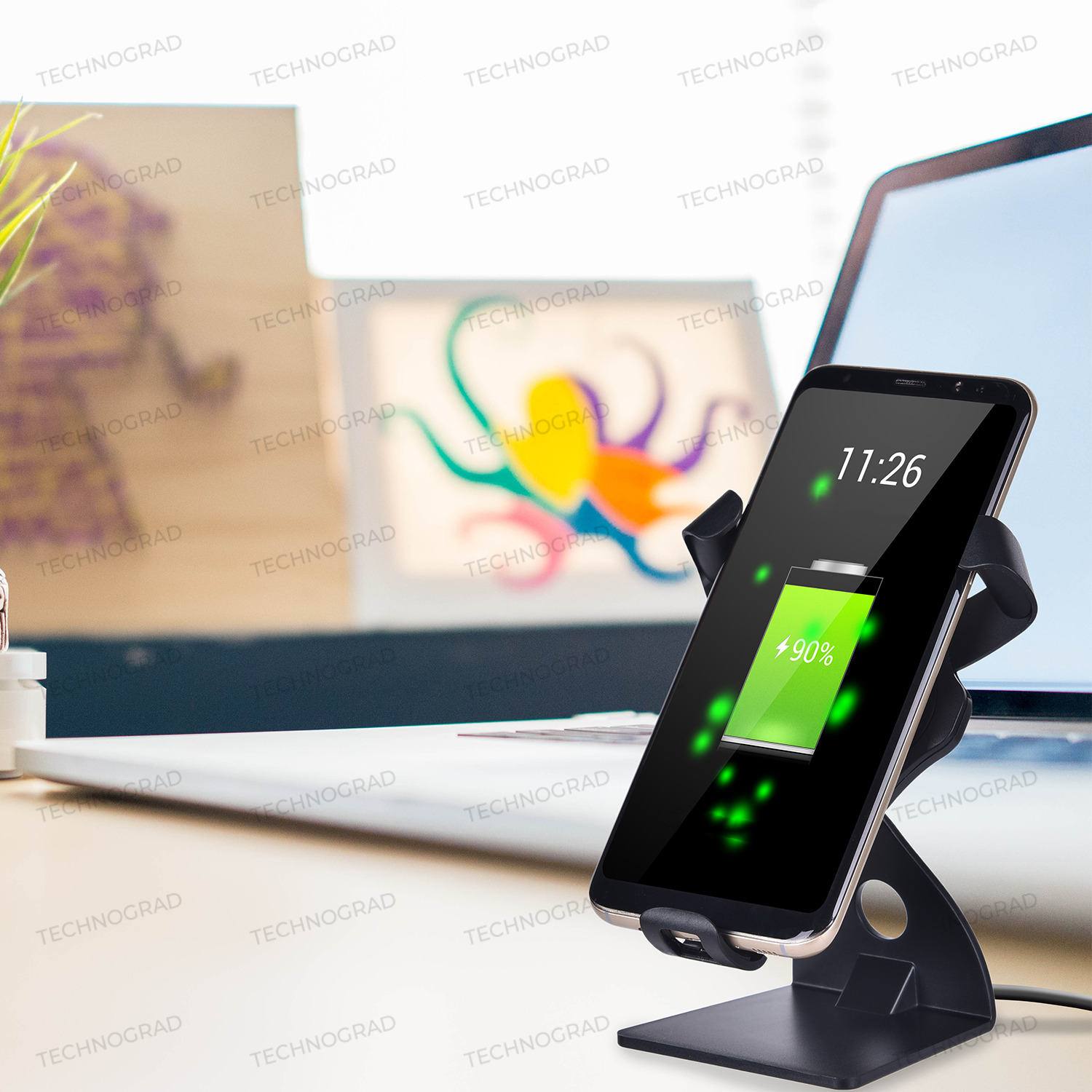 Автомобильный держатель для телефона с беспроводной зарядкой - Fast charge, черный
