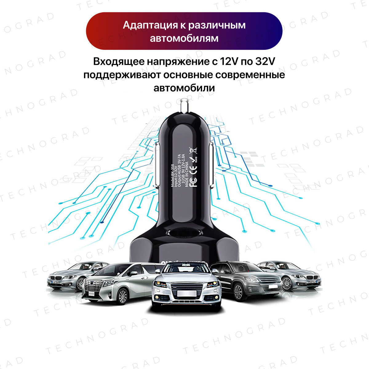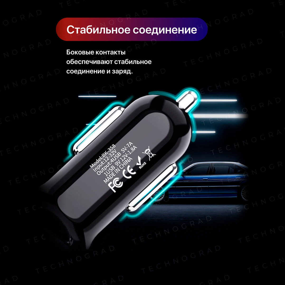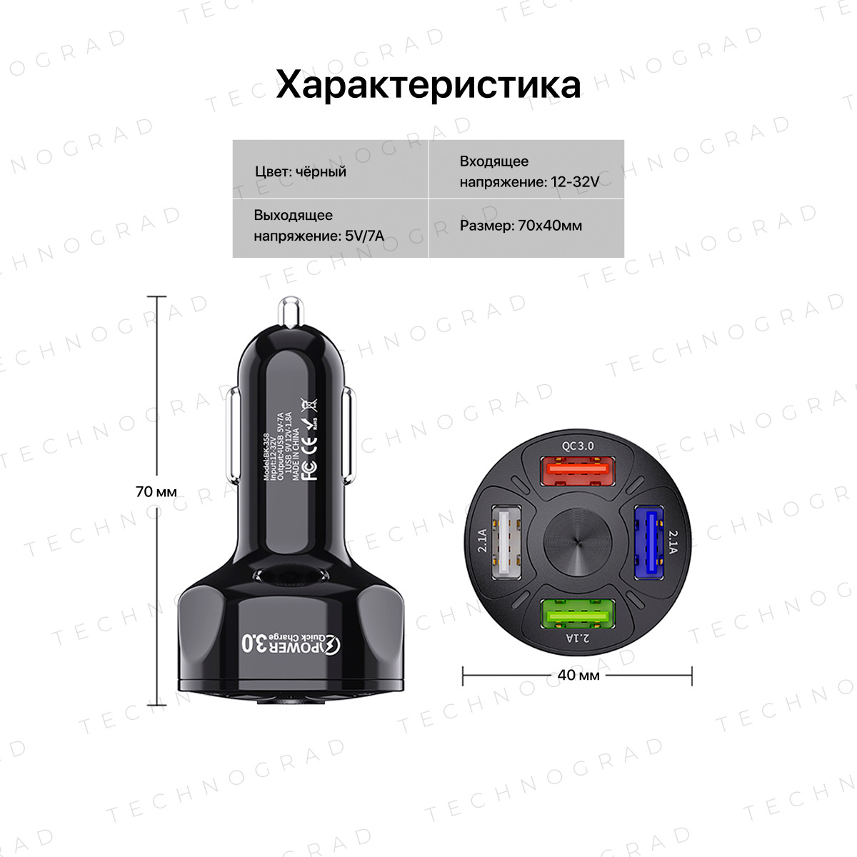 Автомобильное зарядное устройство в прикуриватель 4 порта USB. Зарядка в машину QC3.0