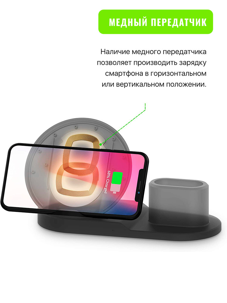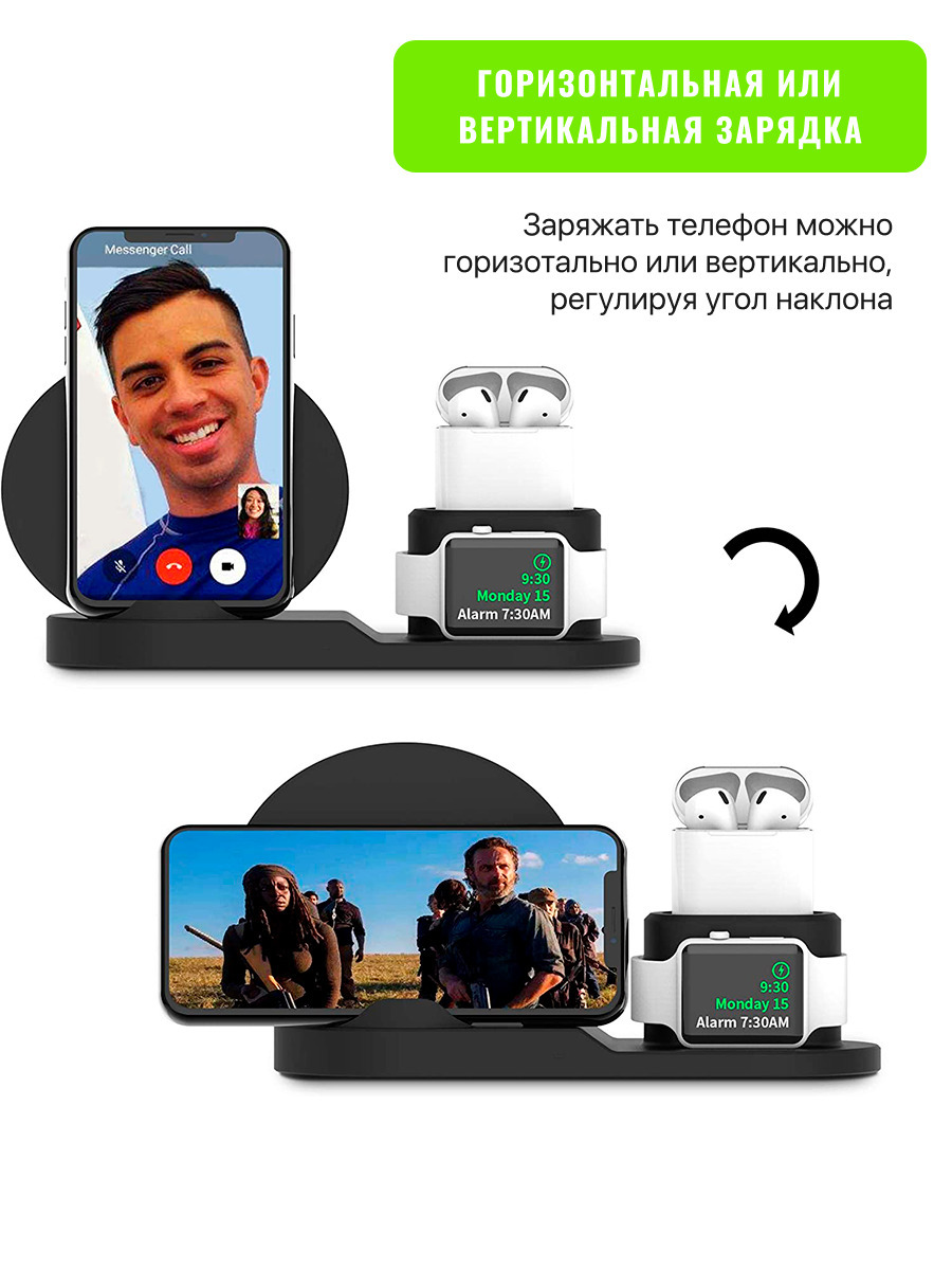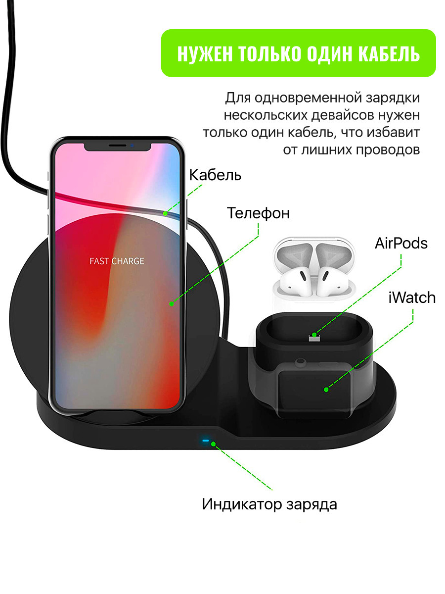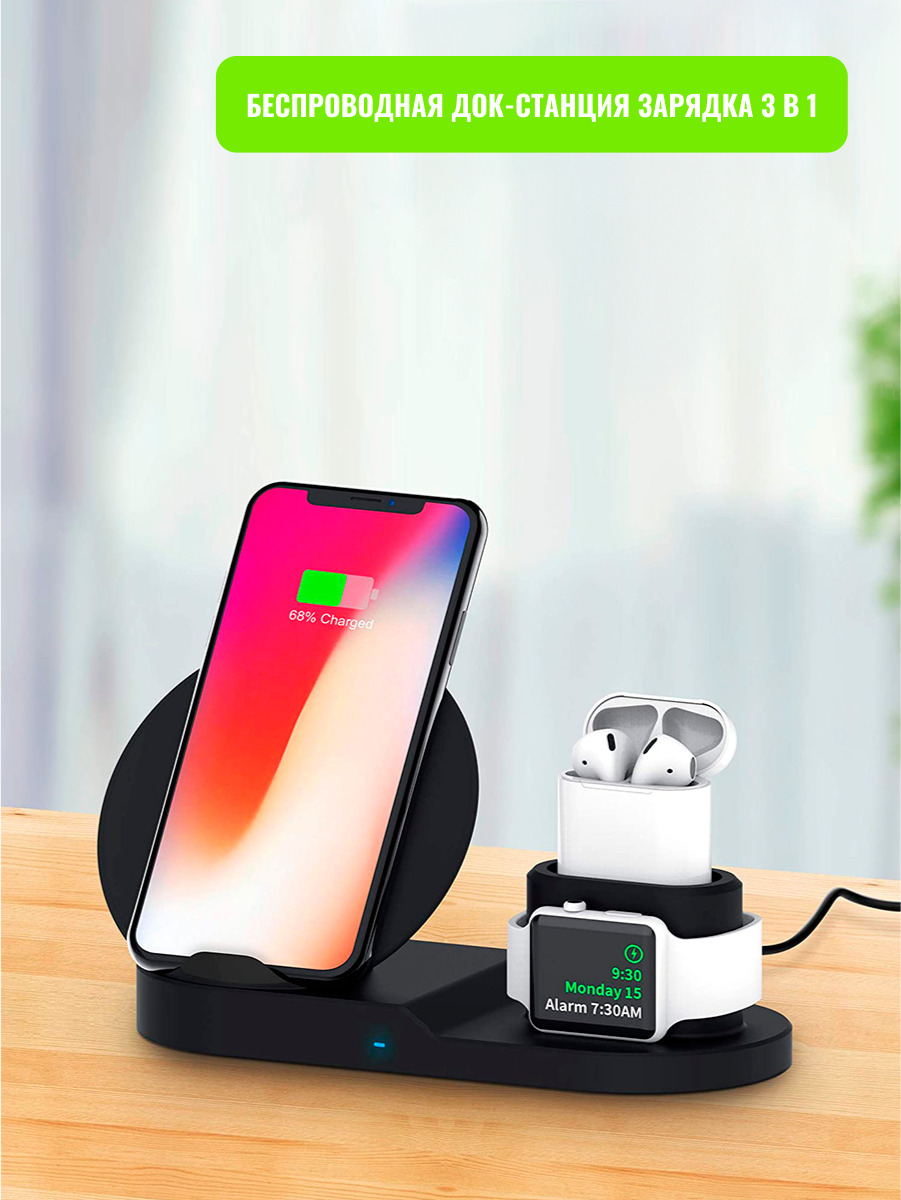 Беспроводная зарядка 3 в 1 для IPhone, Android, смарт-часов, AirPods. Уцененный товар