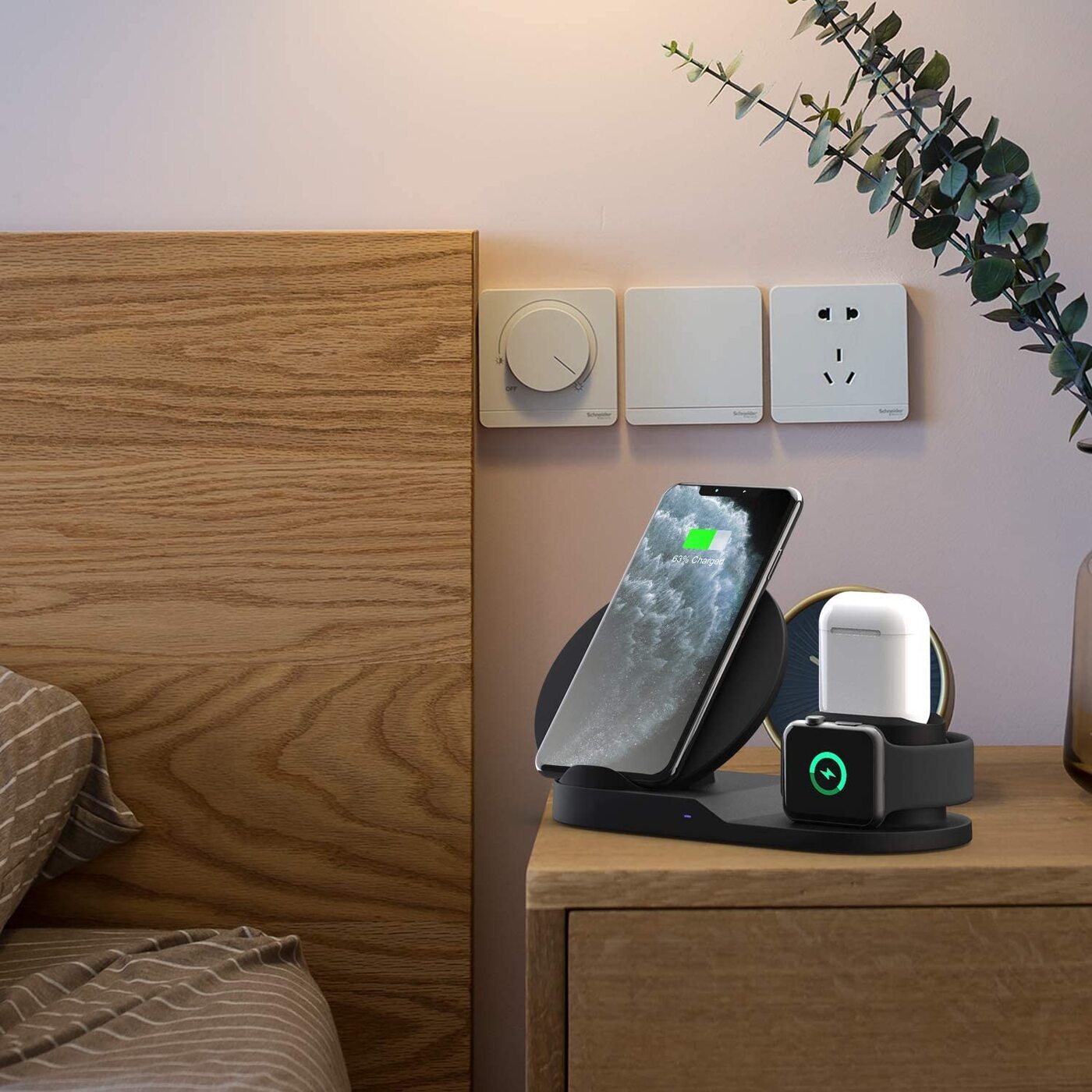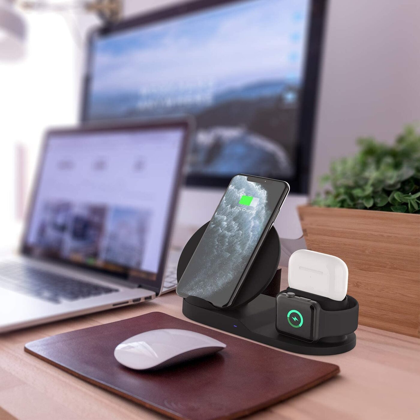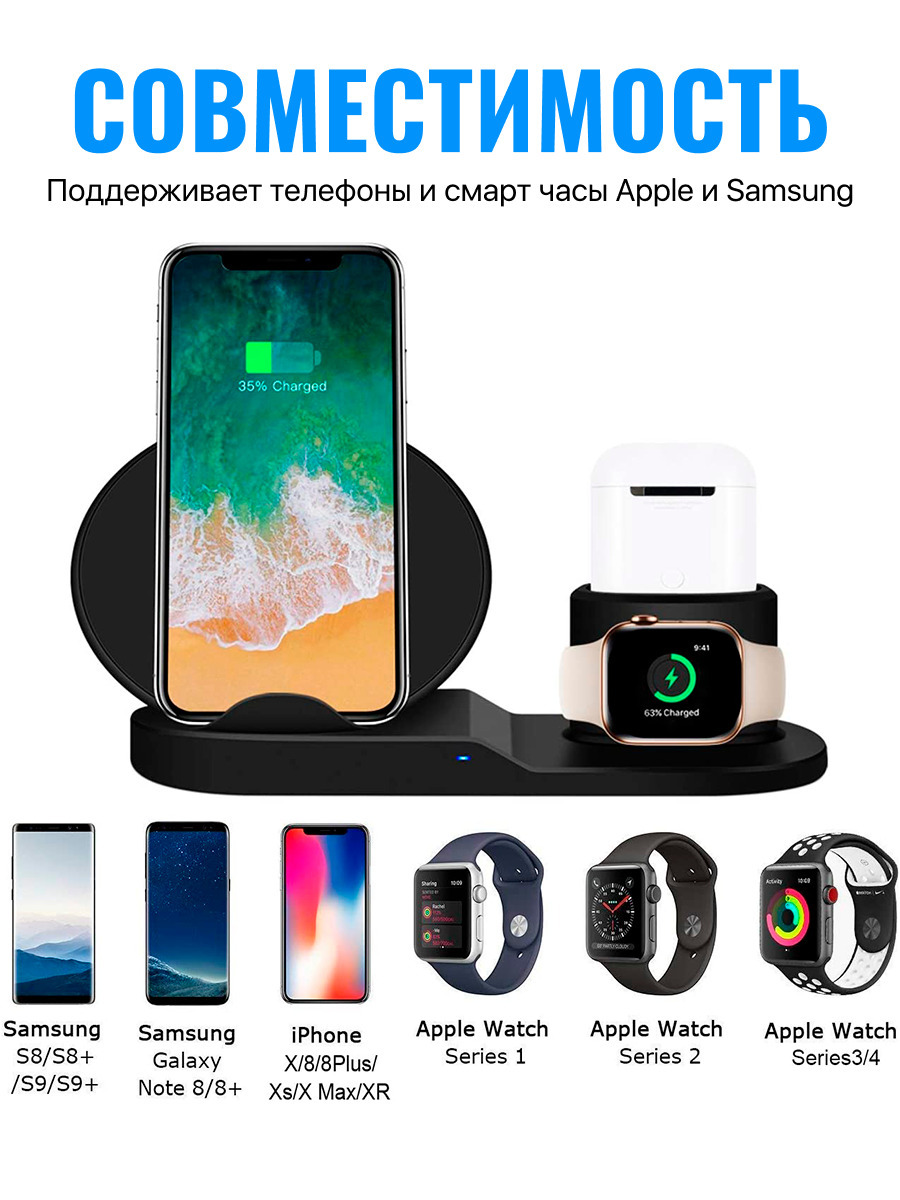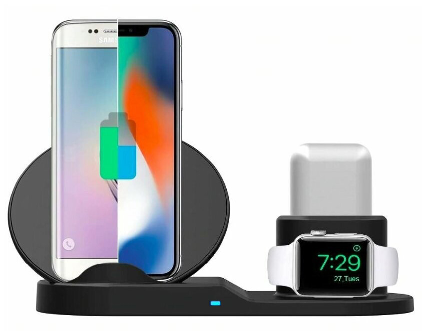 Беспроводная зарядка 3 в 1 для IPhone, Android, смарт-часов, AirPods. Уцененный товар