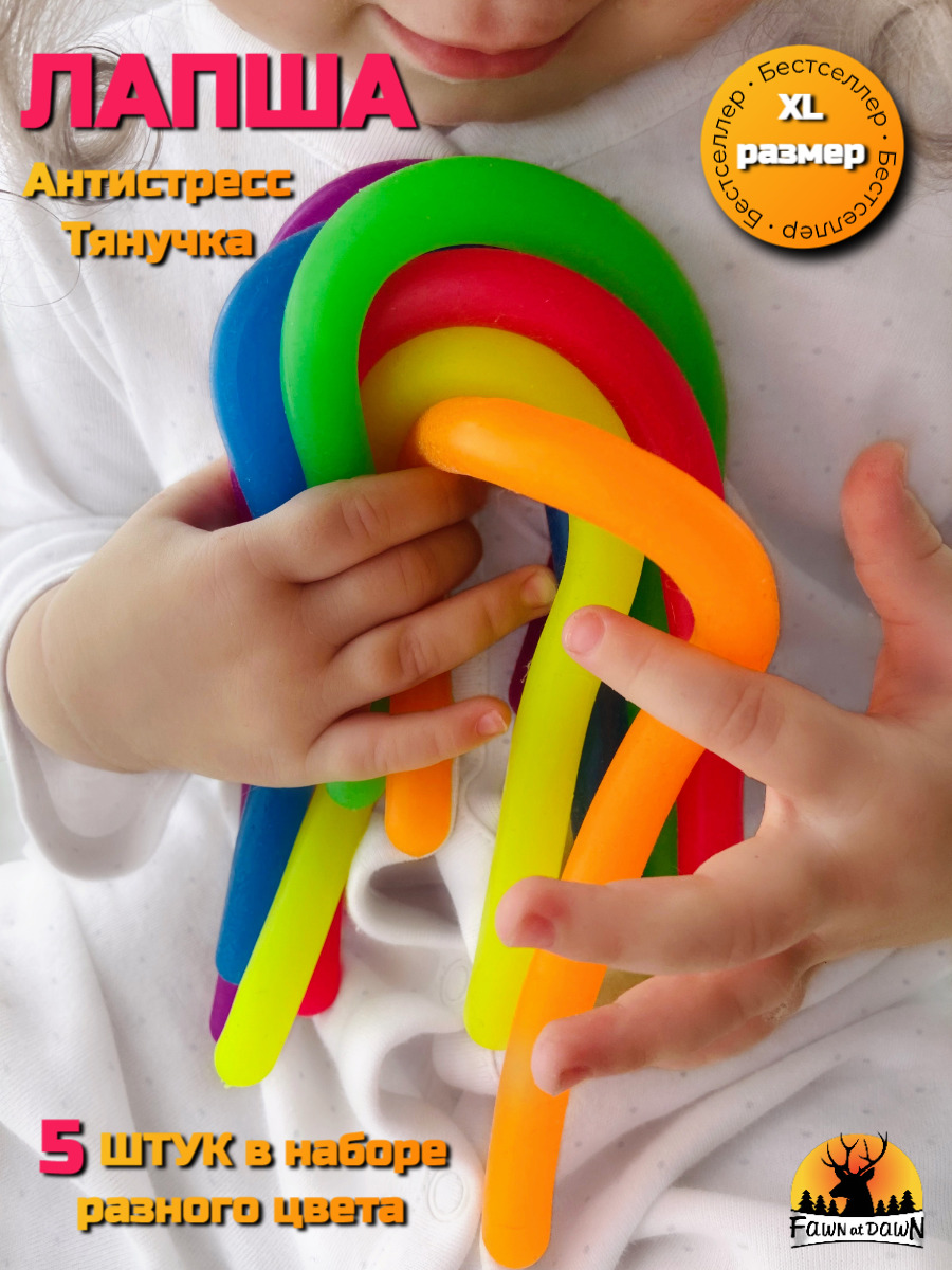 Тянучка антистресс / игрушка антистресс лапша тянучка червяк набор 5 штук / Антистресс мялка для детей