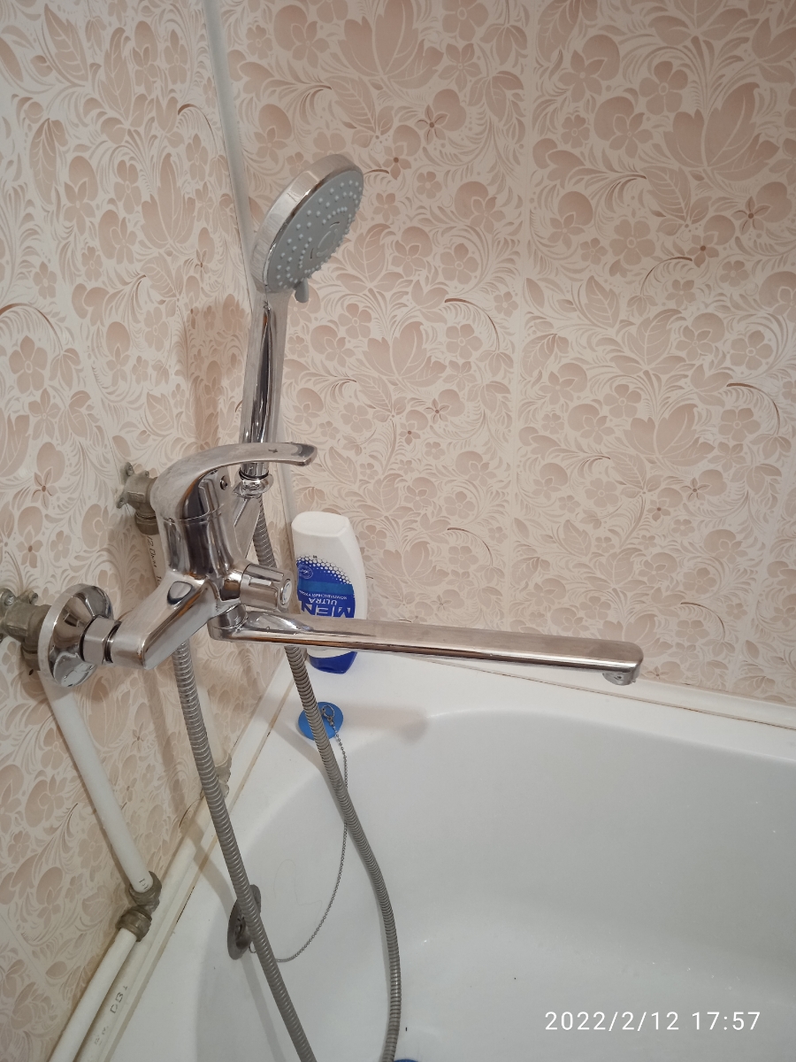 Смеситель для ванны однорычажный Feinise длинный излив переключатель на корпусе