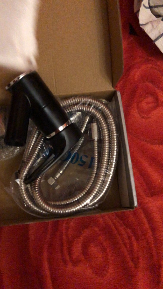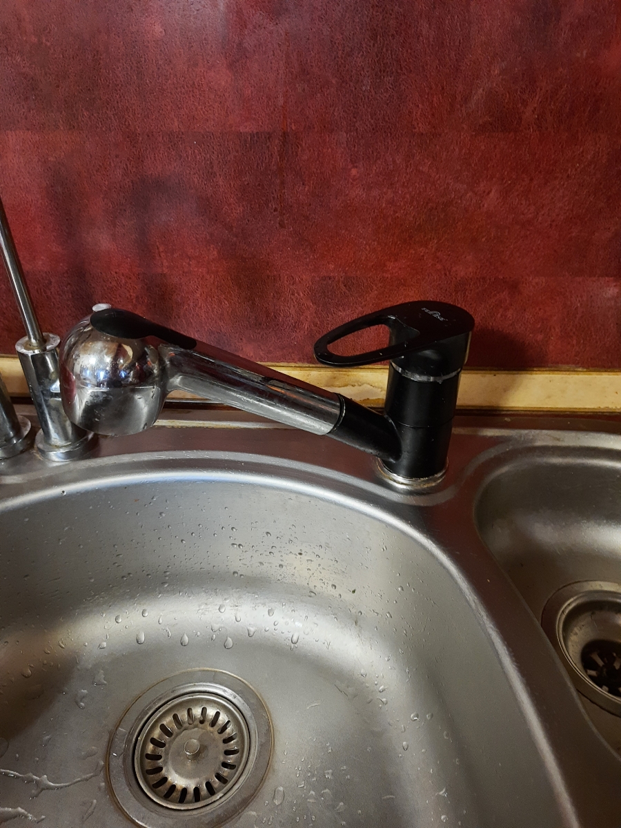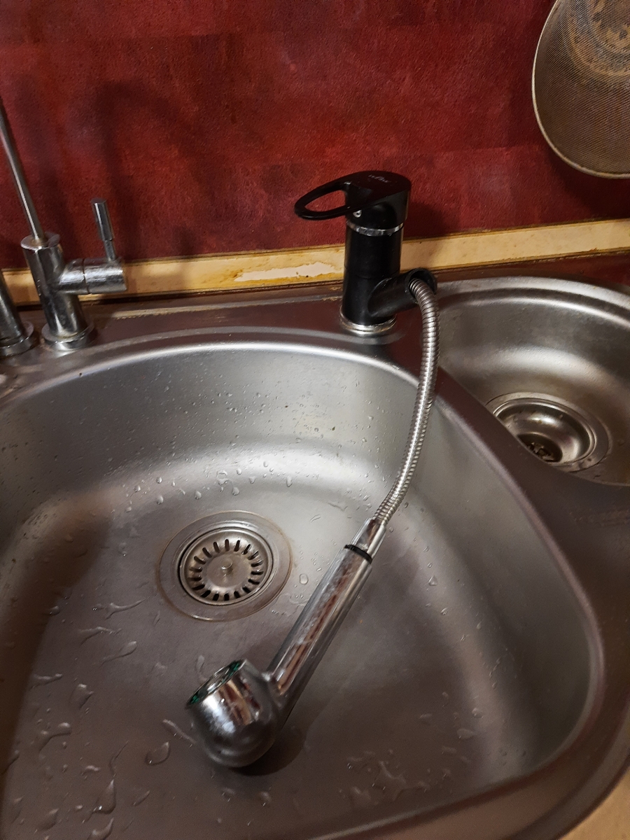 Смеситель для кухни однорычажный Feinise с выдвижной лейкой хром/чёрный