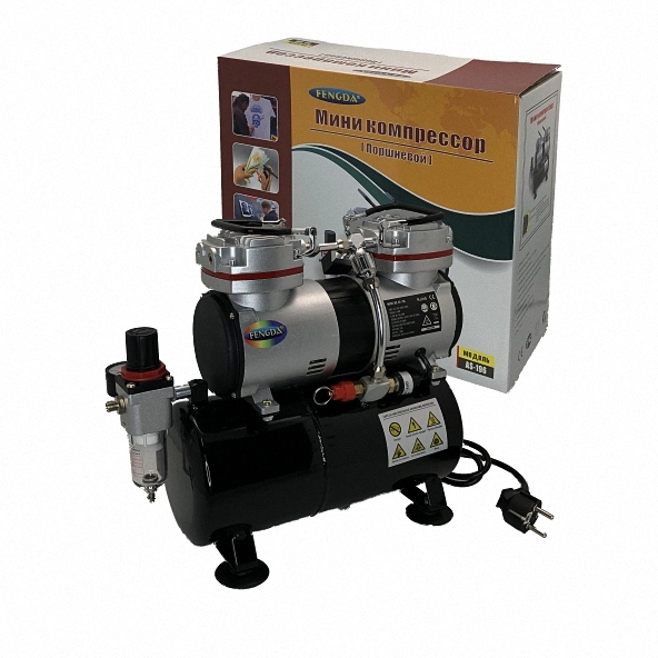Компрессор двухцилиндровый с ресивером 3,5 л, модель "FENGDA AS196" для творчества, моделизма, для кондитера, для маникюра