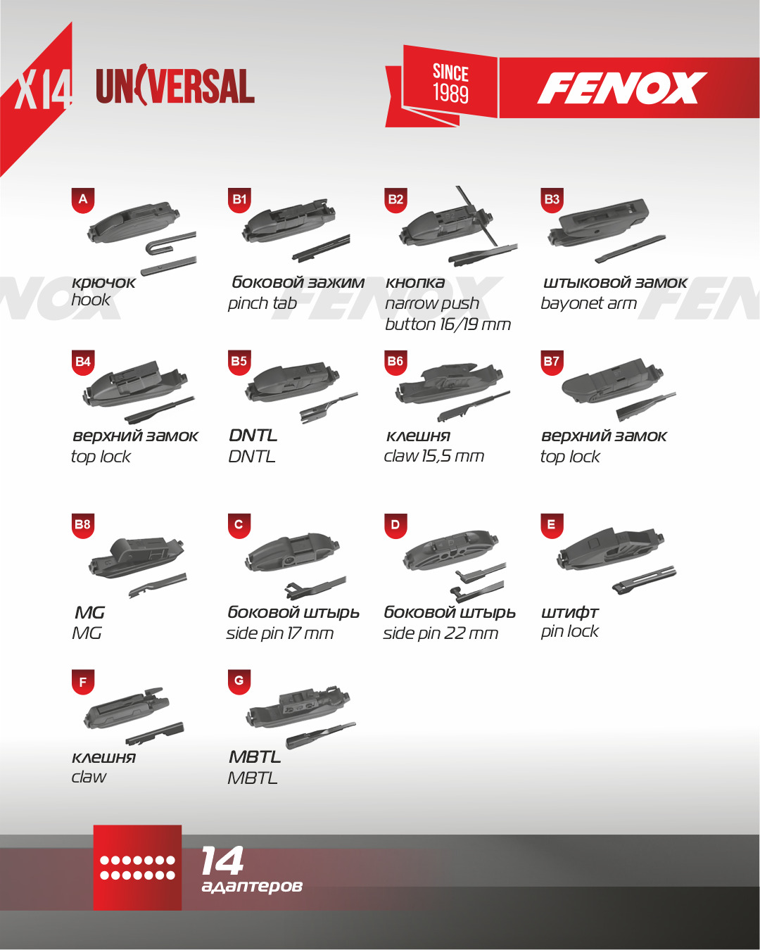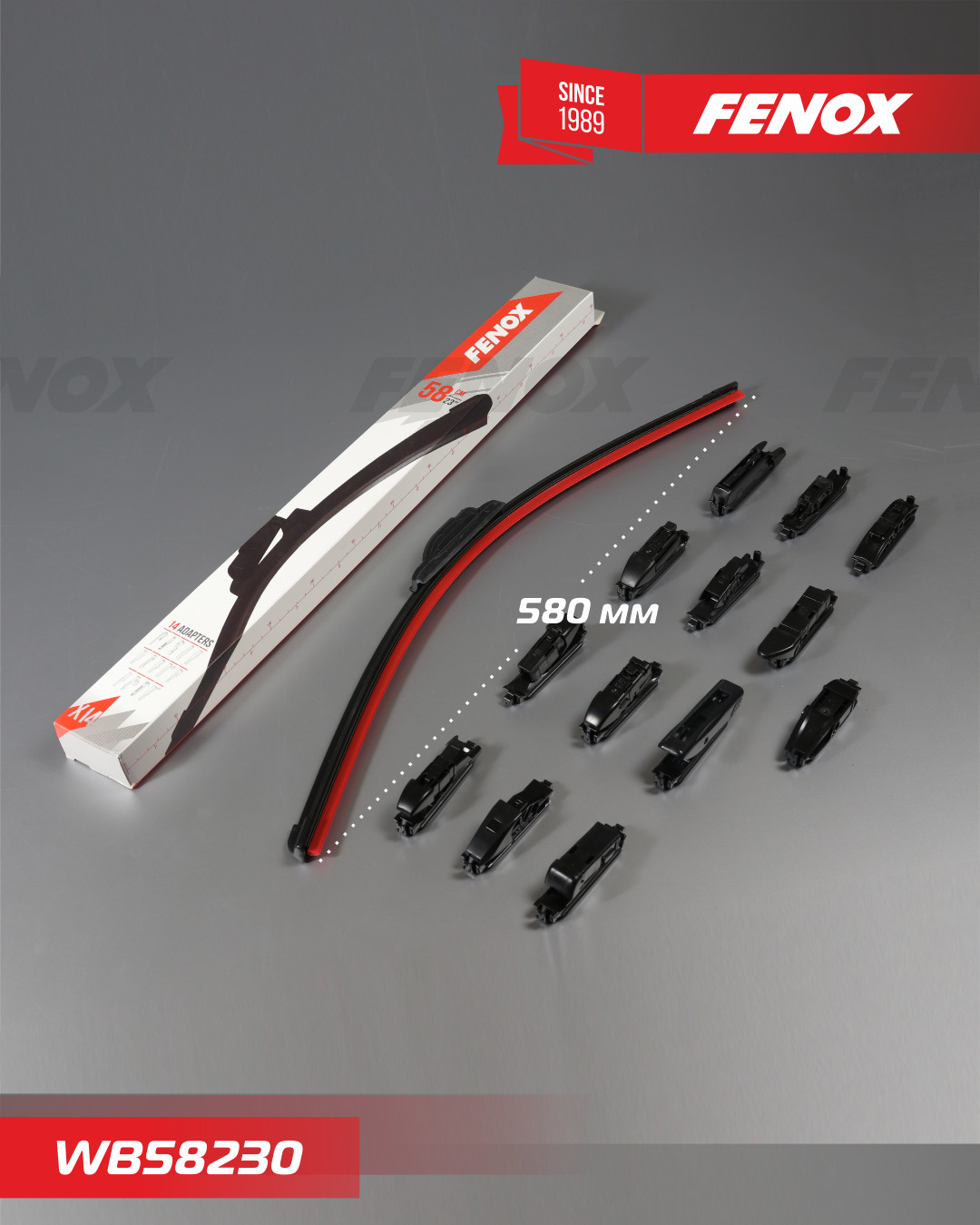 Щетка стеклоочистителя, бескаркасная, 14 адаптеров, 580 мм (23") - FENOX арт.WB58230