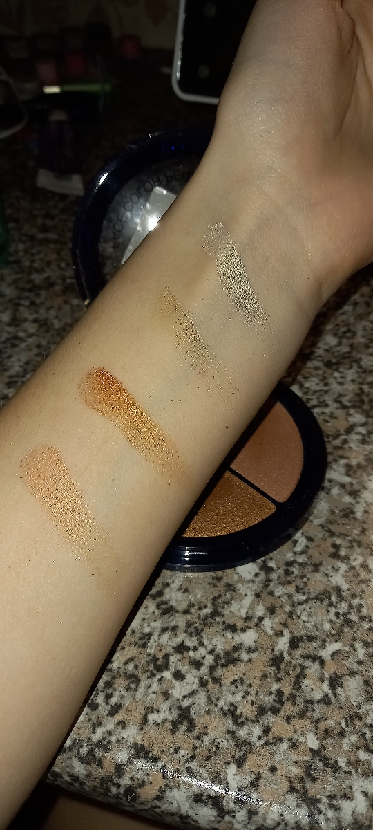 FFLEUR Тени для век компактные матовые, 3 цвета + две кисти №1