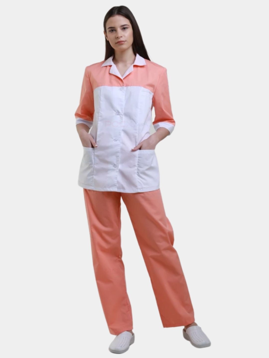 Женский медицинский костюм с отделкой, куртка и брюки ТИСИ, Размер 52-54, Белый