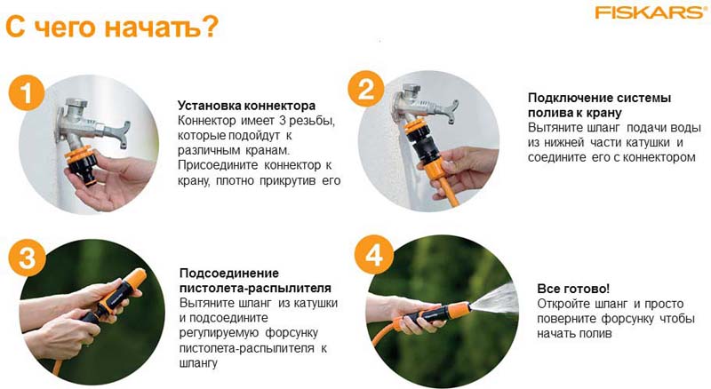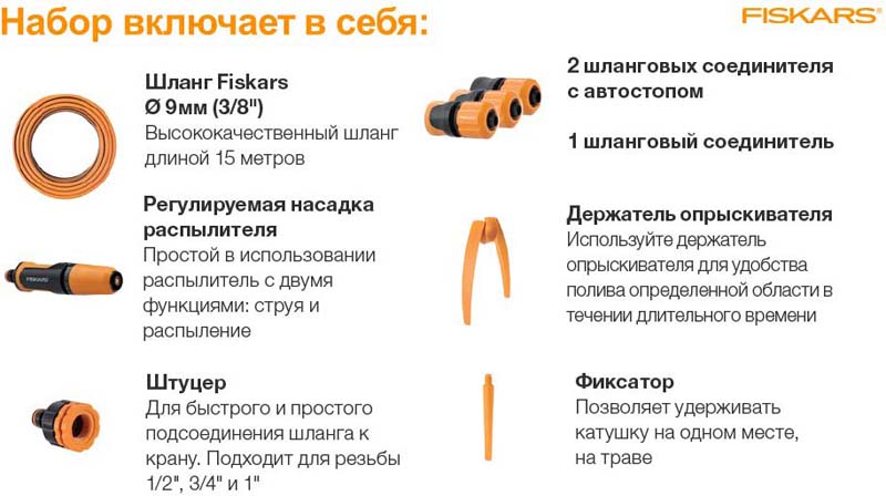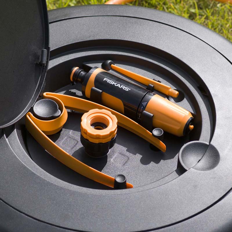 Катушка для шланга "Fiskars", со шлангом и набором аксессуаров, диаметр 9 мм, длина 15 м