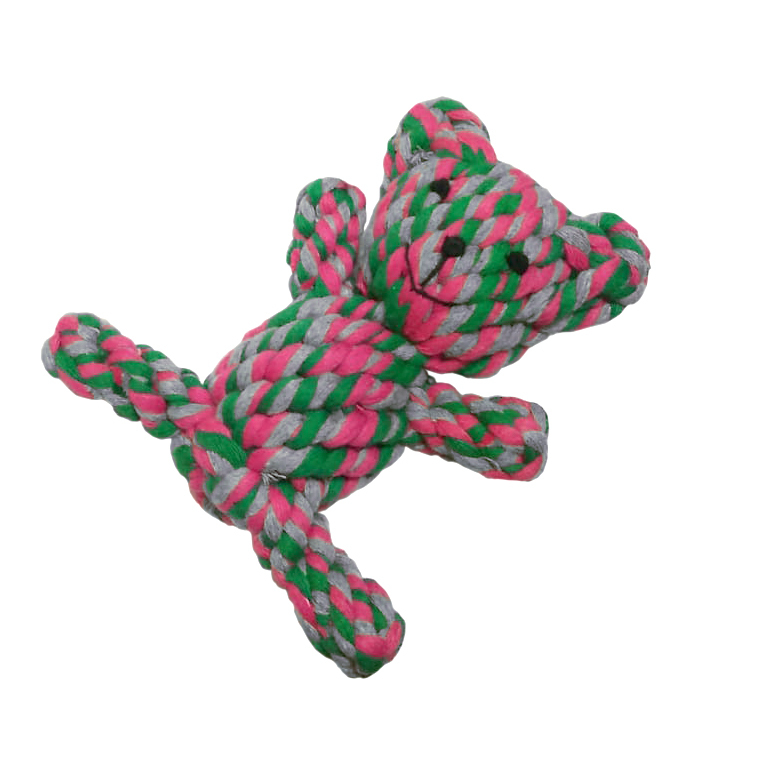 Плетеный мишка FISSA, 15 см, х/б, зелено-розово-серый, игрушка для собак, грызак для собак, хлопок