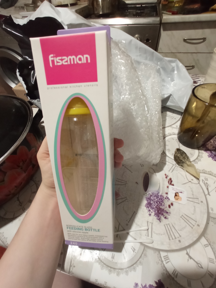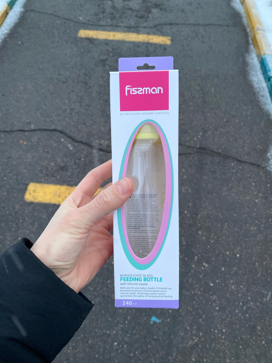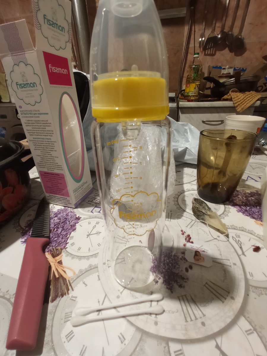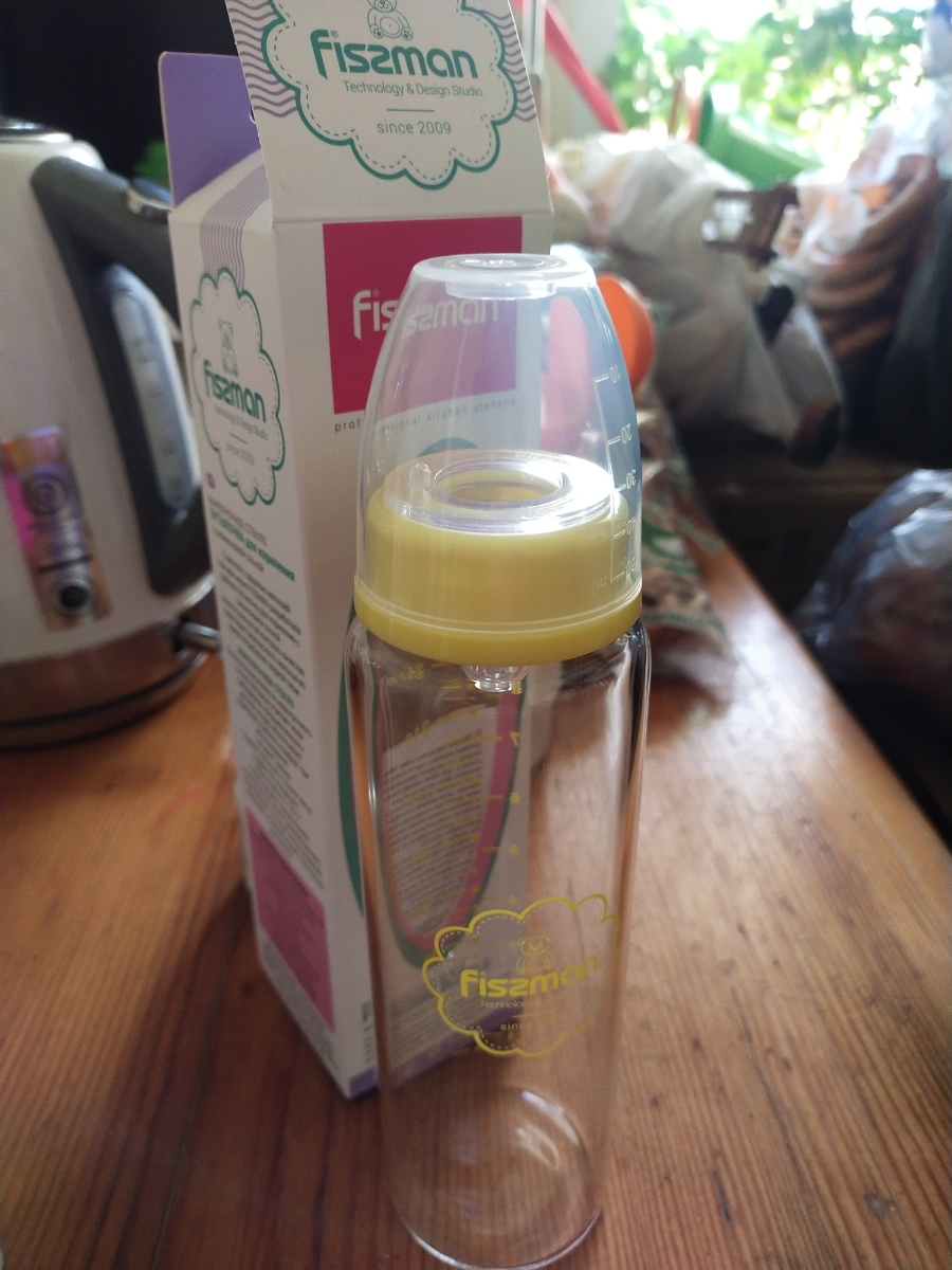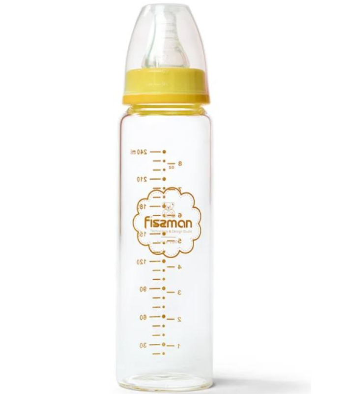 Бутылочка для кормления 240мл, цвет Желтый (жаростойкое стекло) FISSMAN
