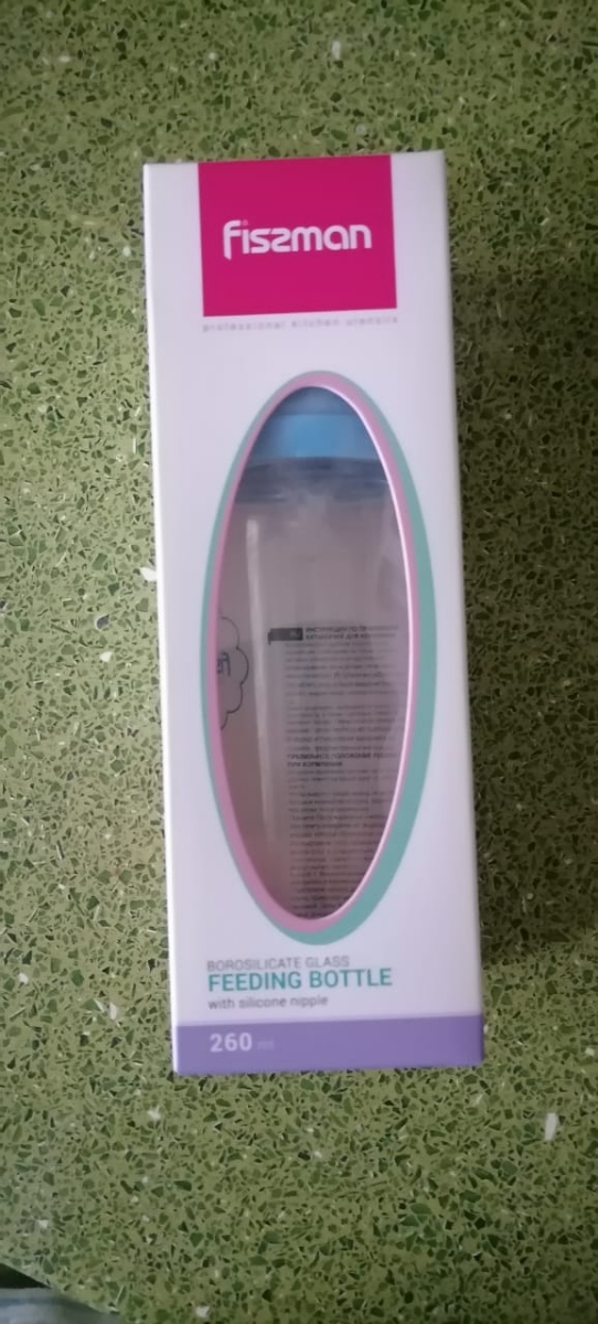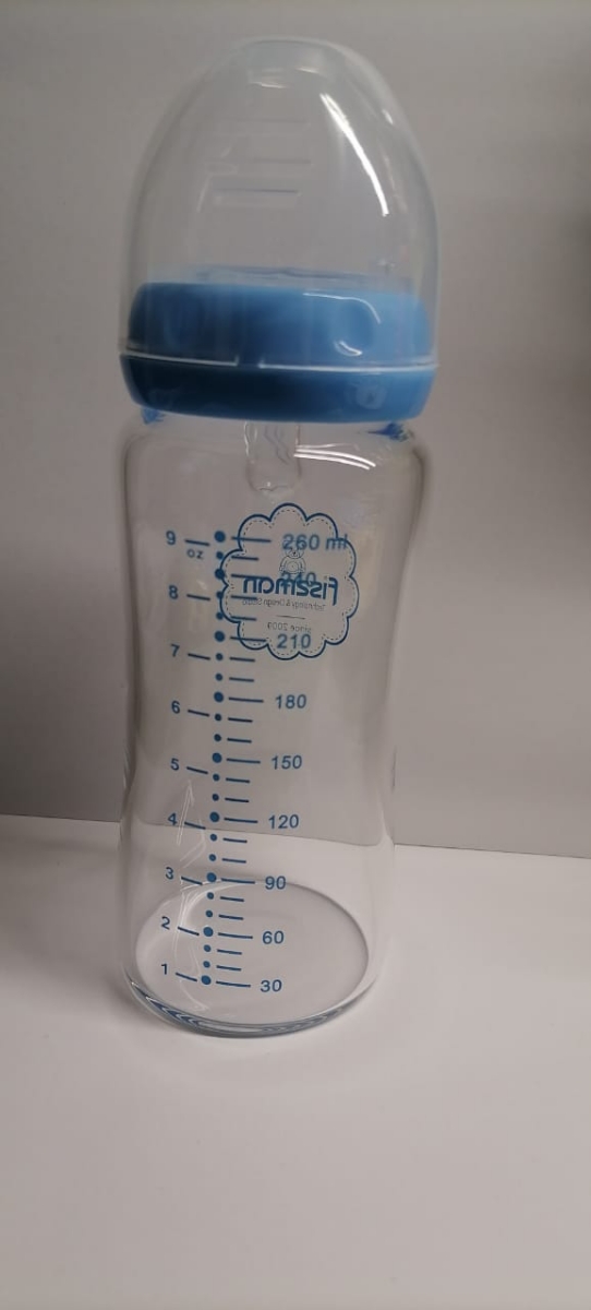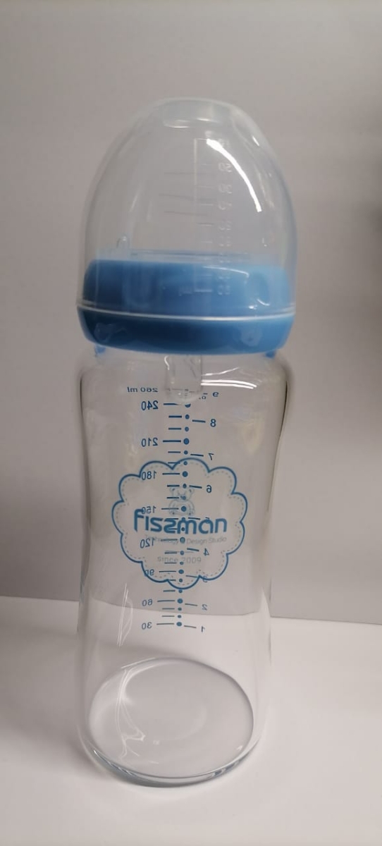 Бутылочка для кормления 260мл, цвет Голубой (жаростойкое стекло) FISSMAN