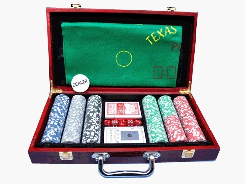 Набор для игры в покер 300 фишек в деревянном кейсе.