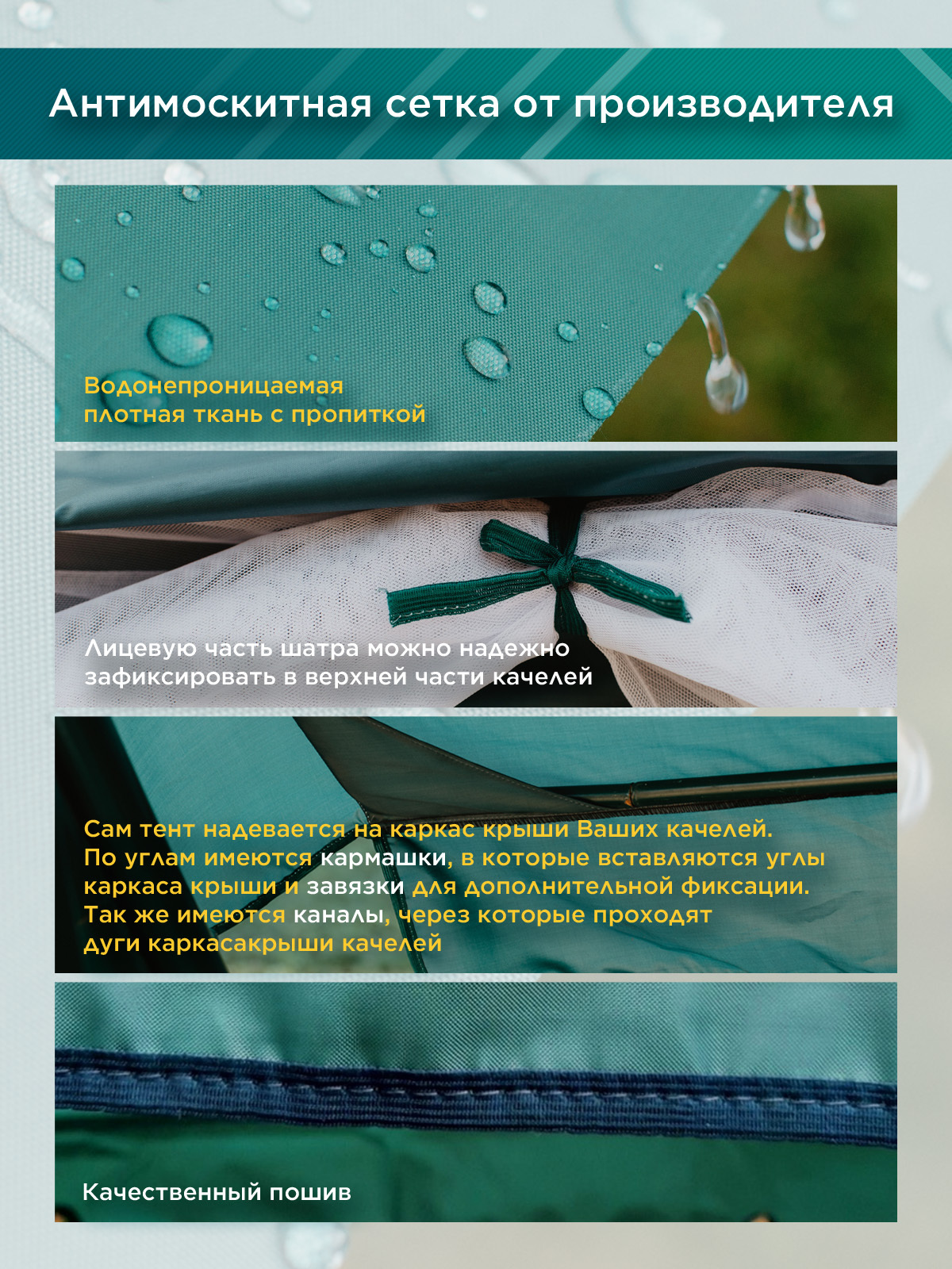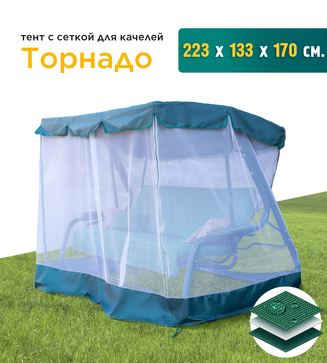 Тент + москитная сетка для садовых качелей Торнадо (223х133х170 см.) зеленый