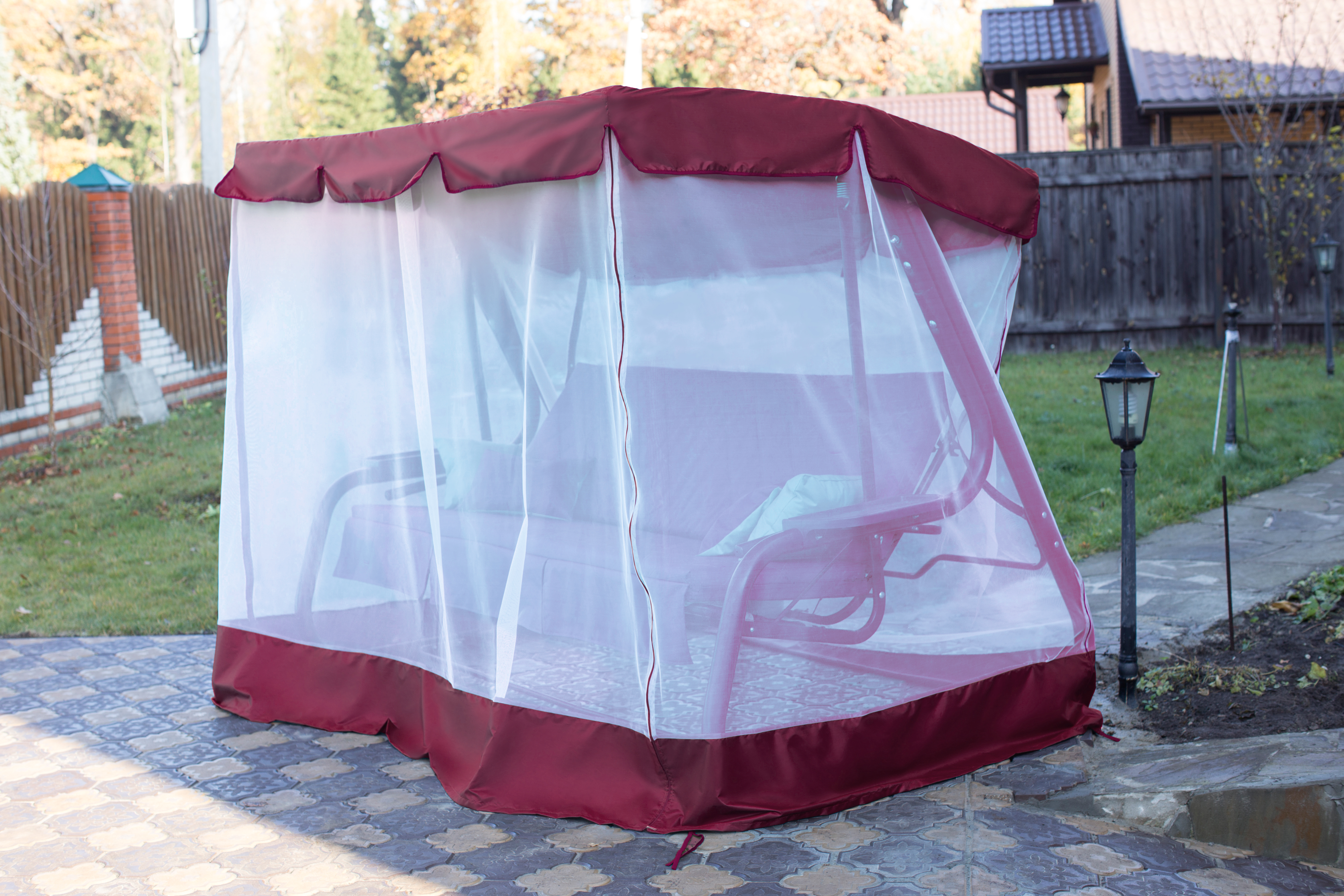 Тент-шатер + москитная сетка для садовых качелей Родео (208х145х170 см.) бордовый