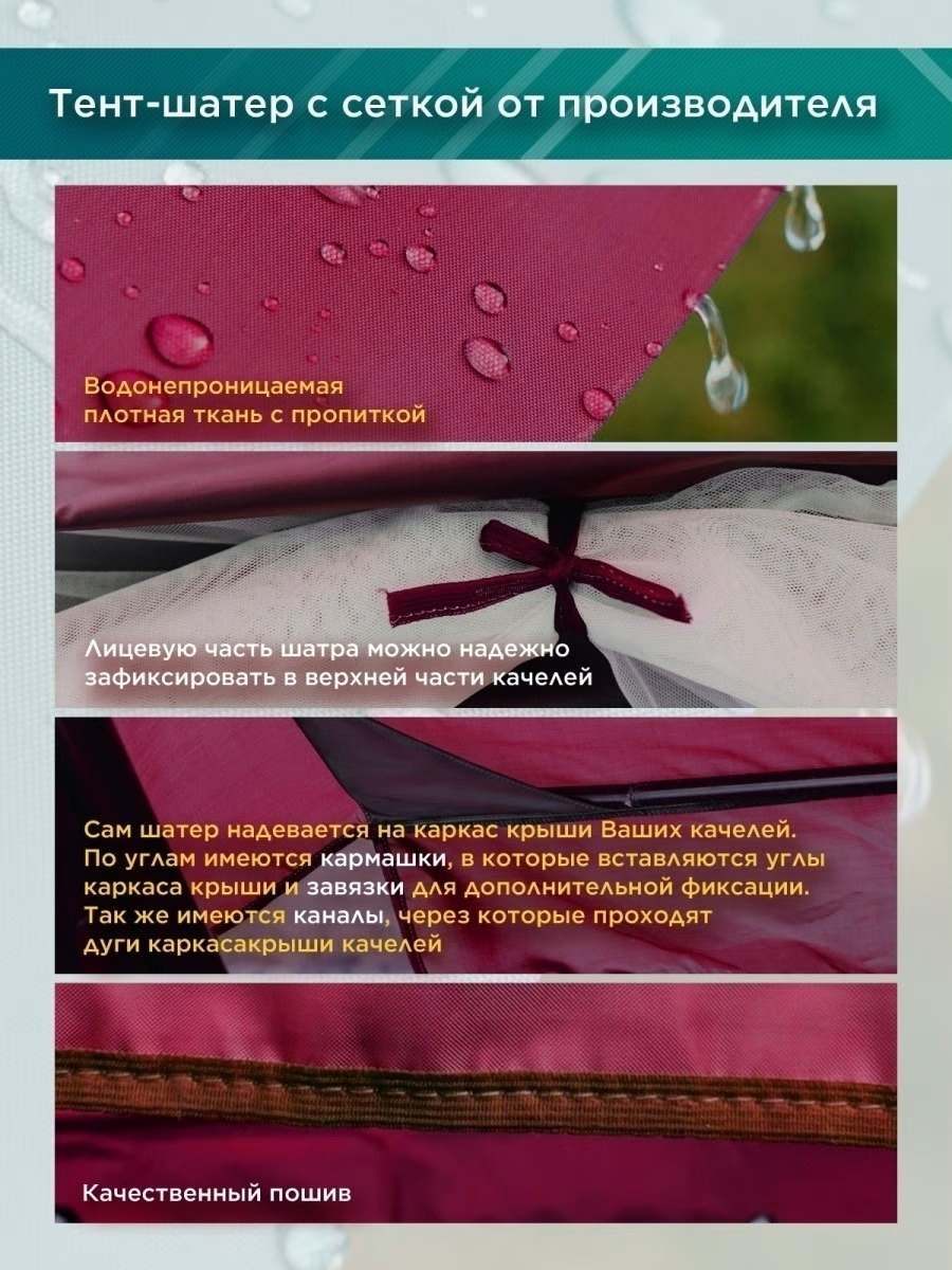 Тент-шатер + москитная сетка для садовых качелей Родео (208х145х170 см.) бордовый