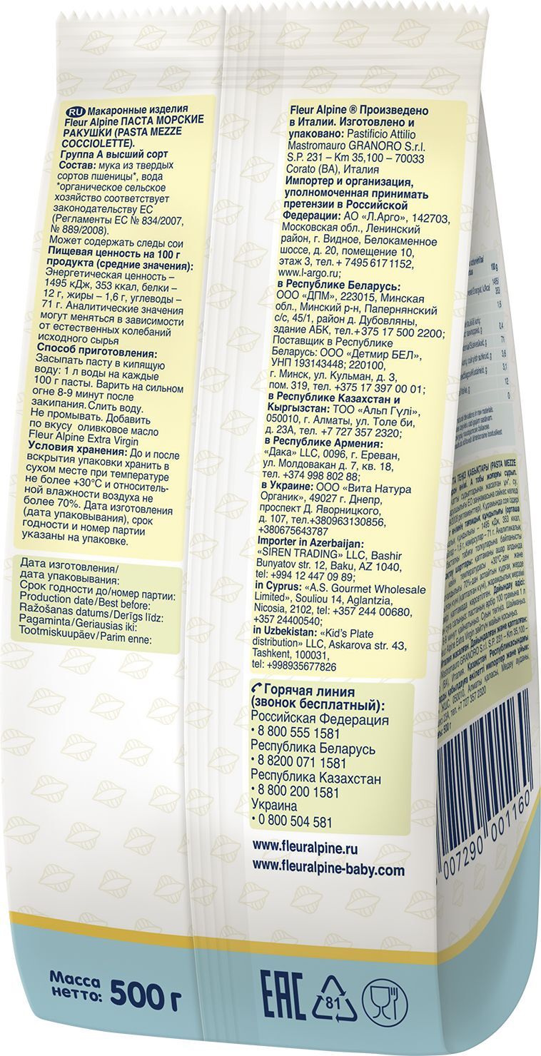 Макароны морские ракушки Fleur Alpine для всей семьи, 500 г