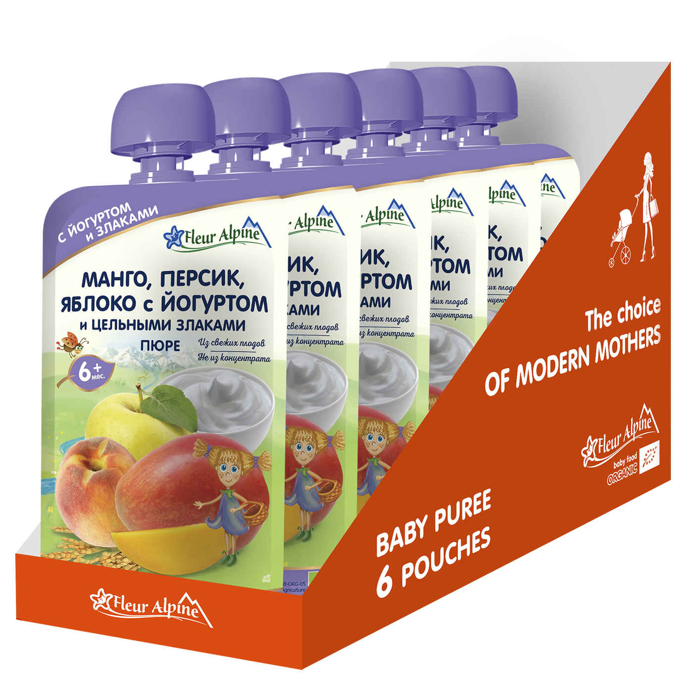 Пюре детское Fleur Alpine Яблоко и черника, с 5 месяцев, 6 шт. по 90 г