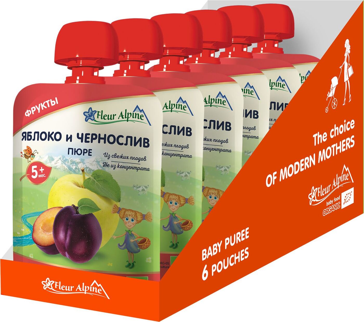 Пюре детское Fleur Alpine яблоко и чернослив, с 5 месяцев, 6 шт. по 90 г
