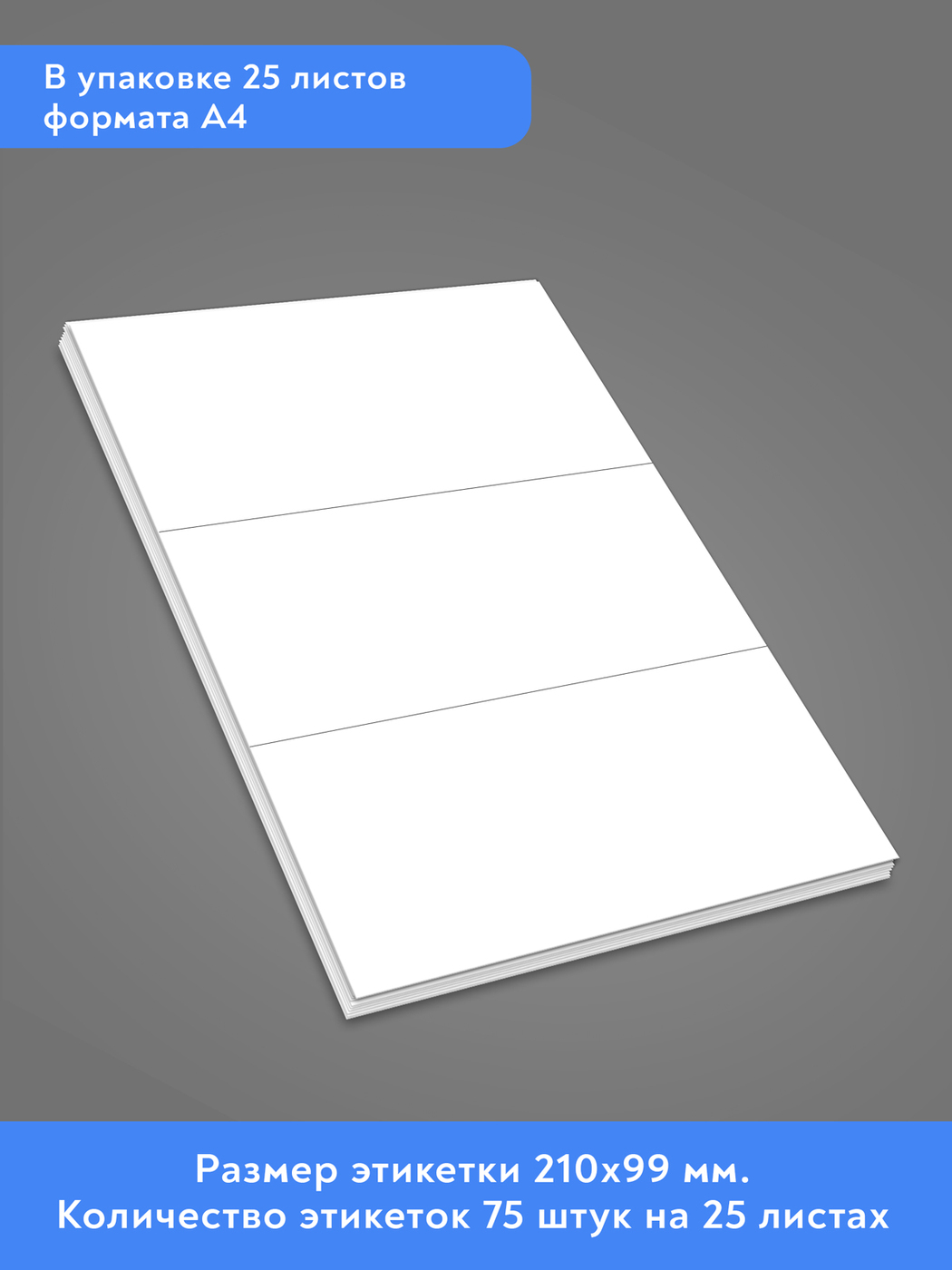Комплект универсальных самоклеящихся этикеток, 210х99 мм, цвет белый, формат А4 - 25 листов