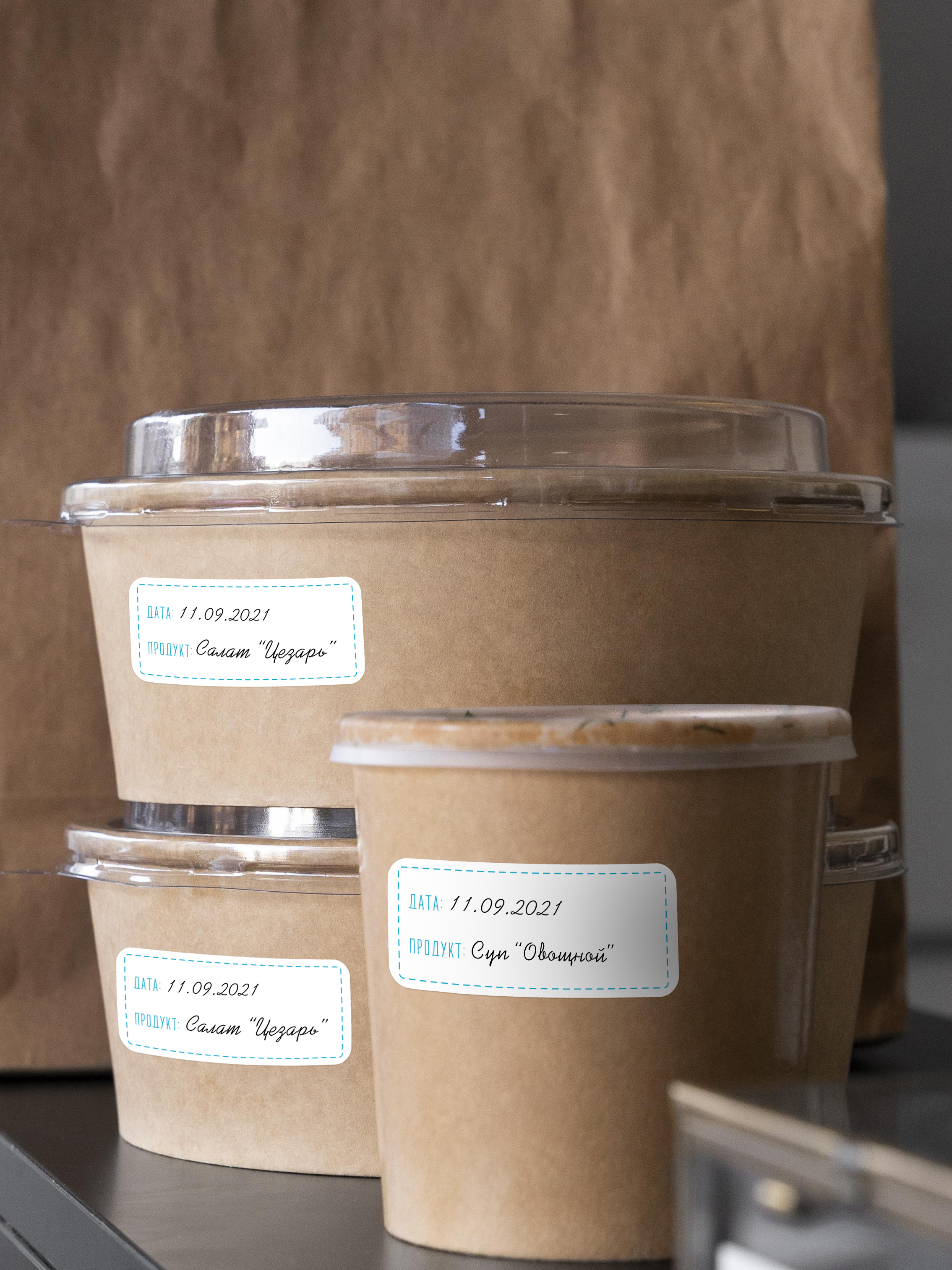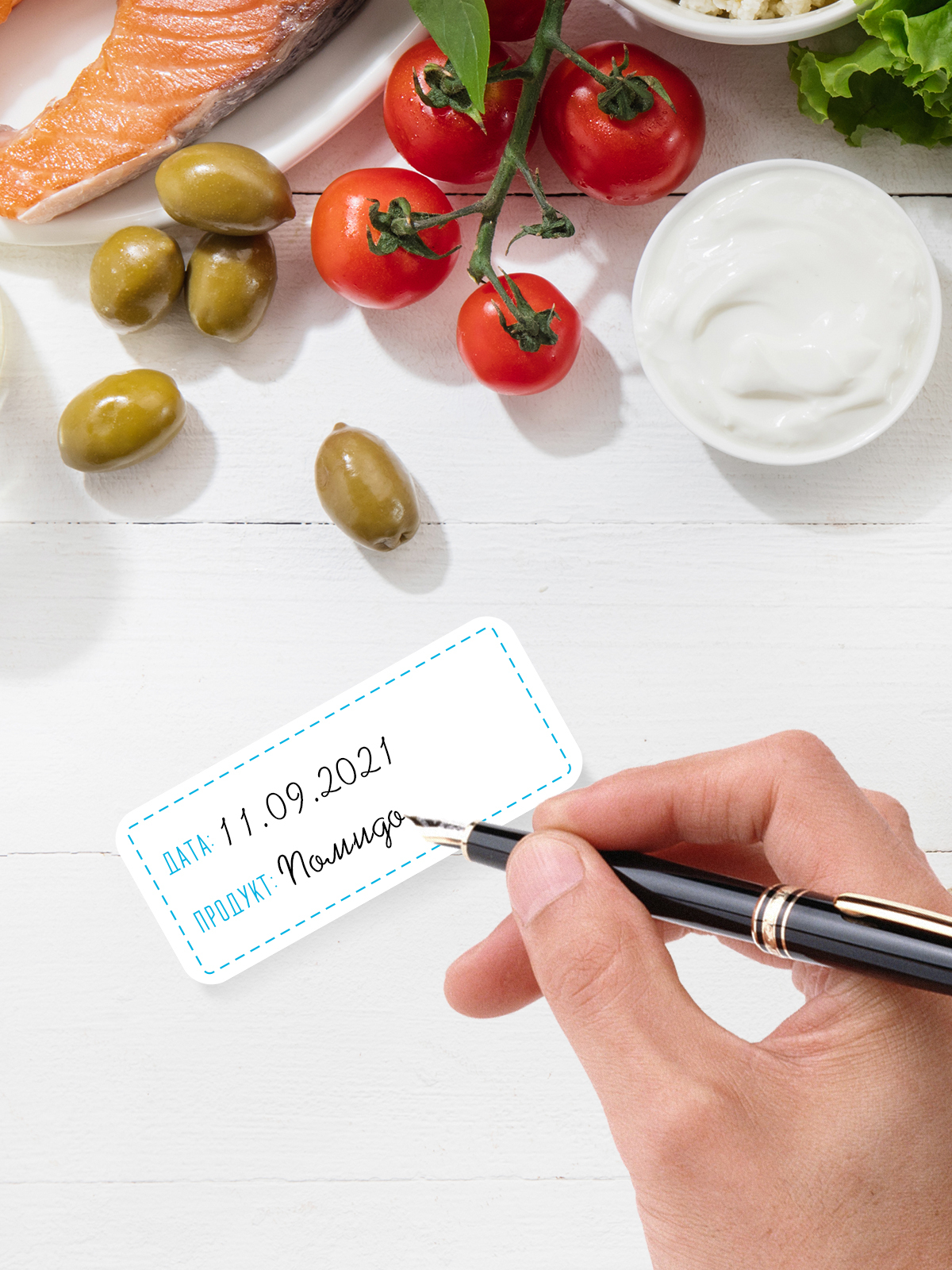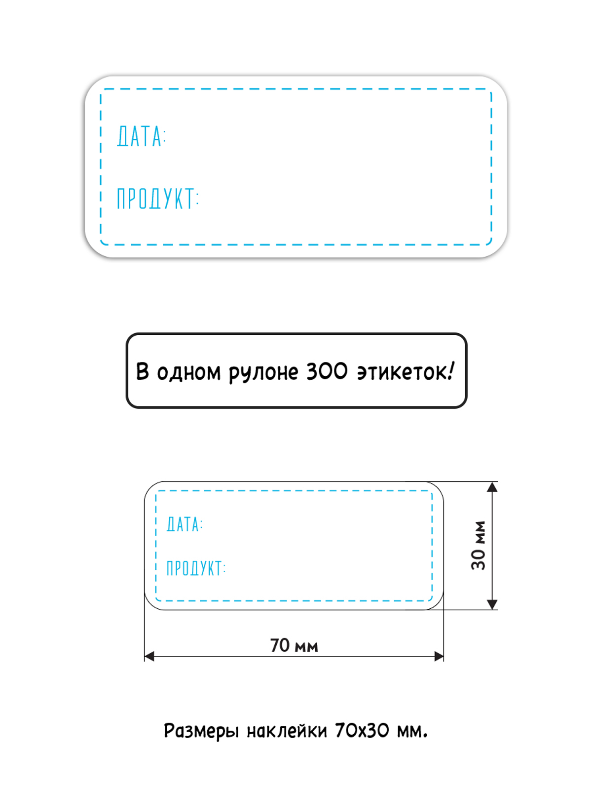 Самоклеющиеся этикетки для замороженных продуктов с принтом цвет бирюзовый 30x70 мм, 300 шт. втулка картон