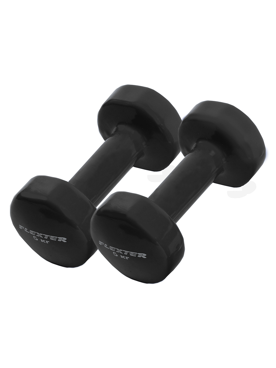 Гантели FLEXTER Гантель для фитнеса 2 шт. неопреновые черный, 2 шт. по 5 кг, черный цвет