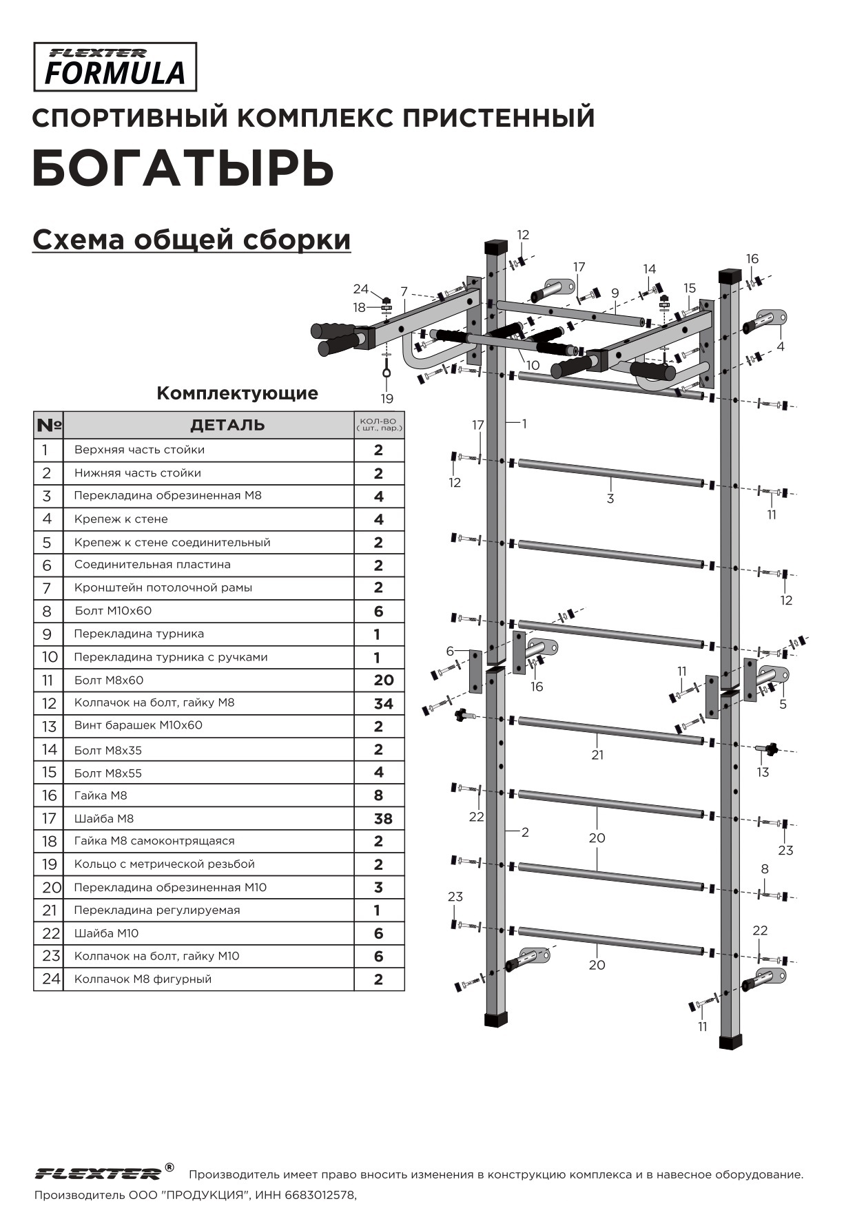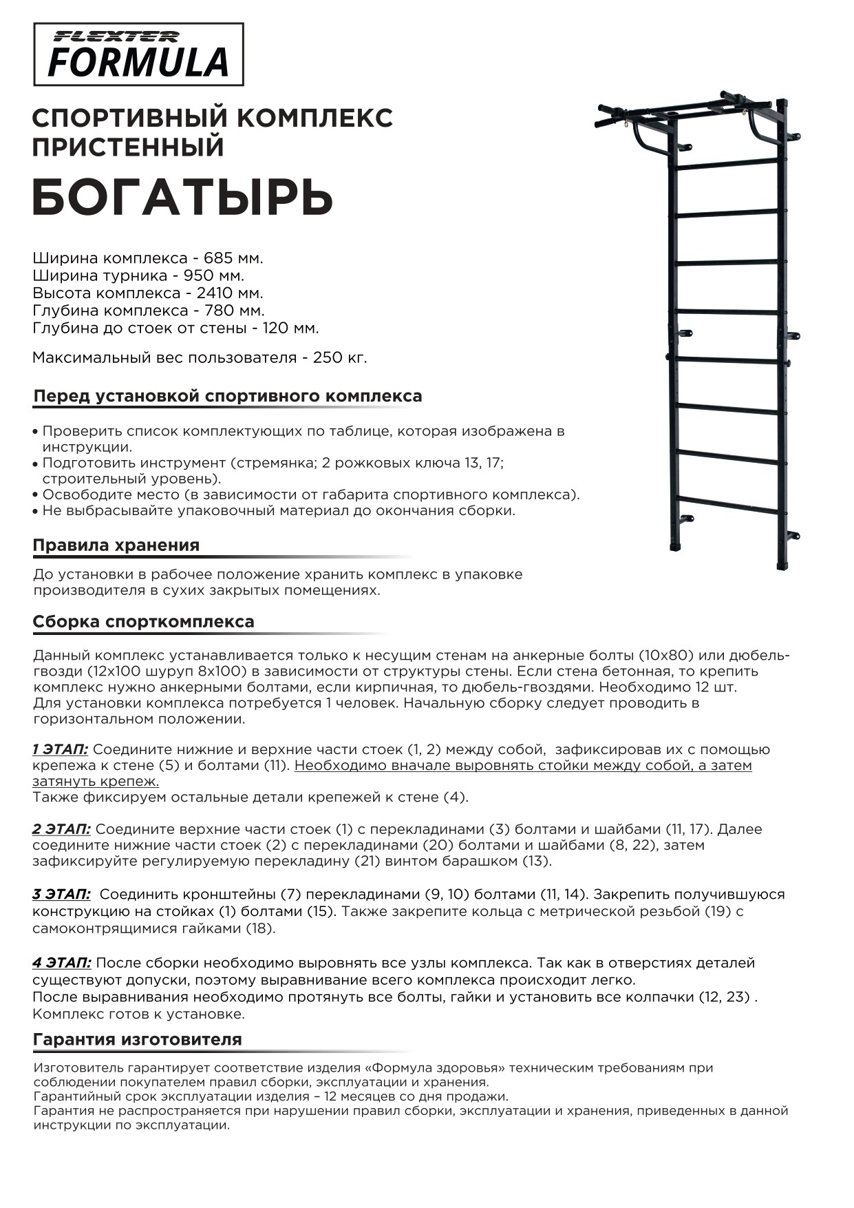 Детский Спортивный комплекс Богатырь FLEXTER шведская стенка silver/black