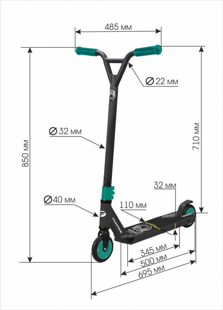 Самокат Трюковой FLEXTER FLIP, 110 мм