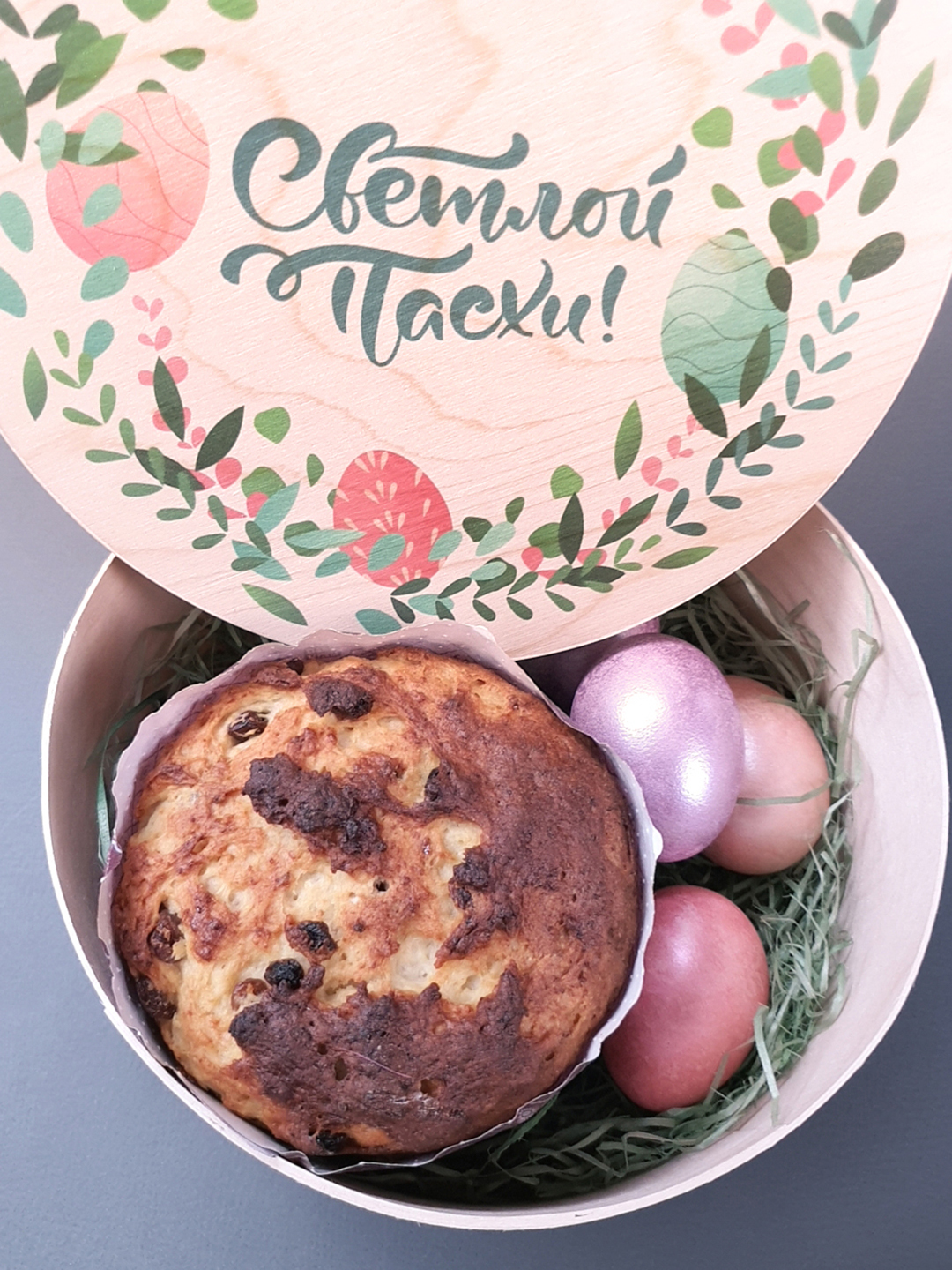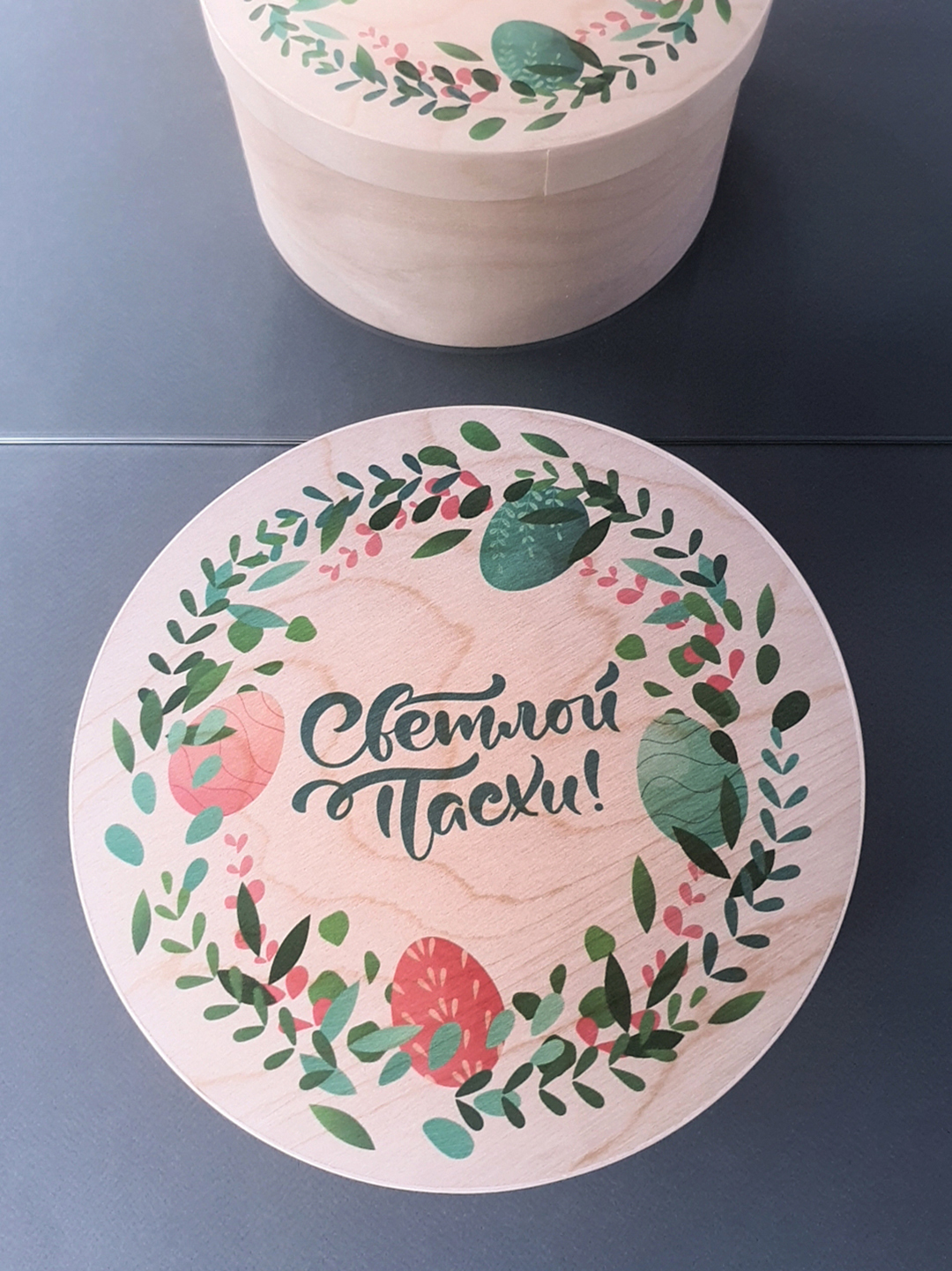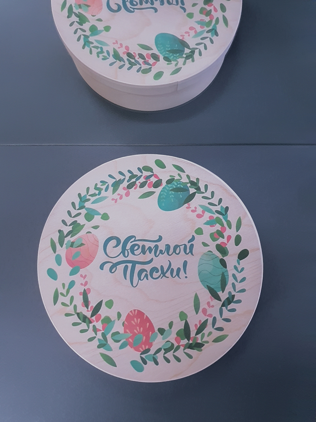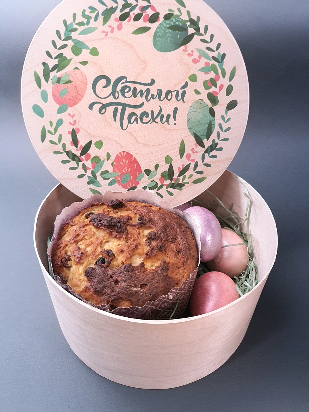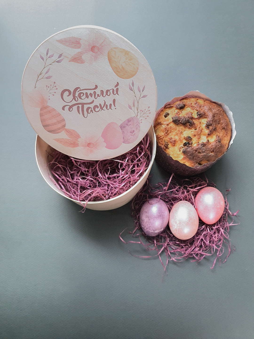 Подарочная коробка к Пасхе "Круглая", для яиц и кулича
