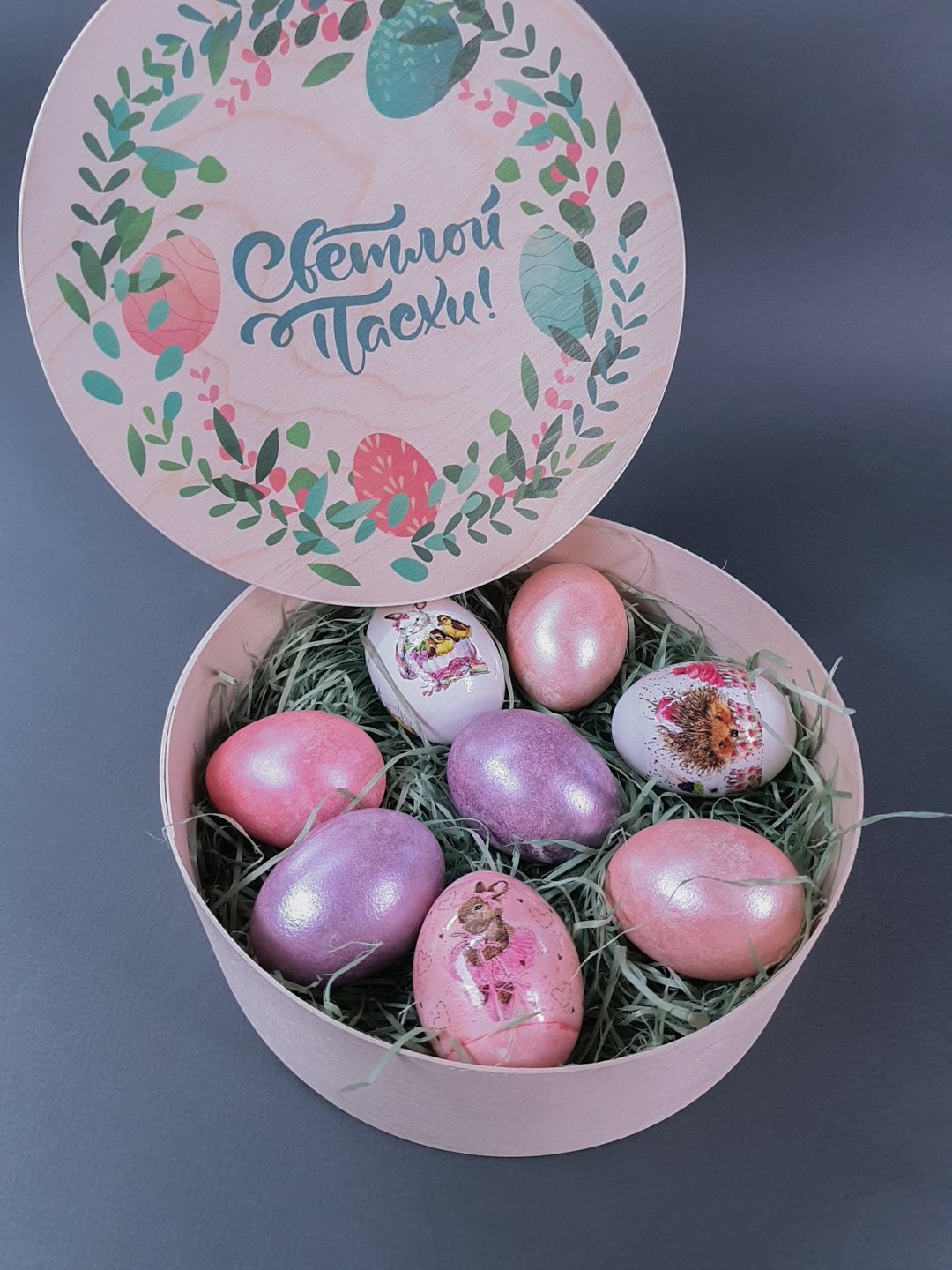 Большая подарочная коробка к Пасхе "Круглая", для яиц