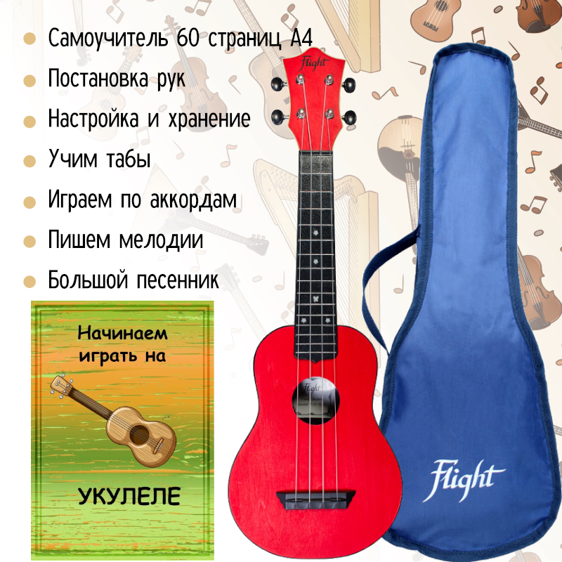 Укулеле Сердце Flight TUS 35 RD с самоучителем и чехлом