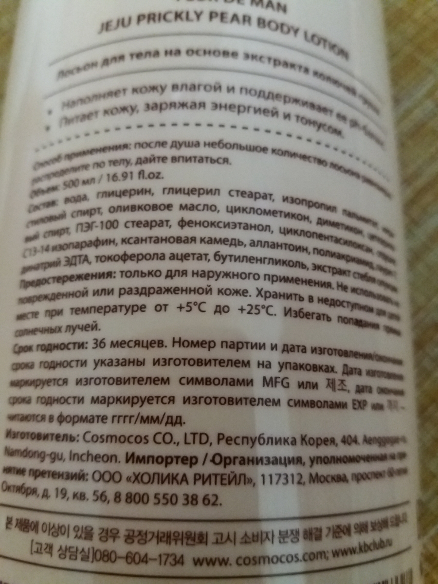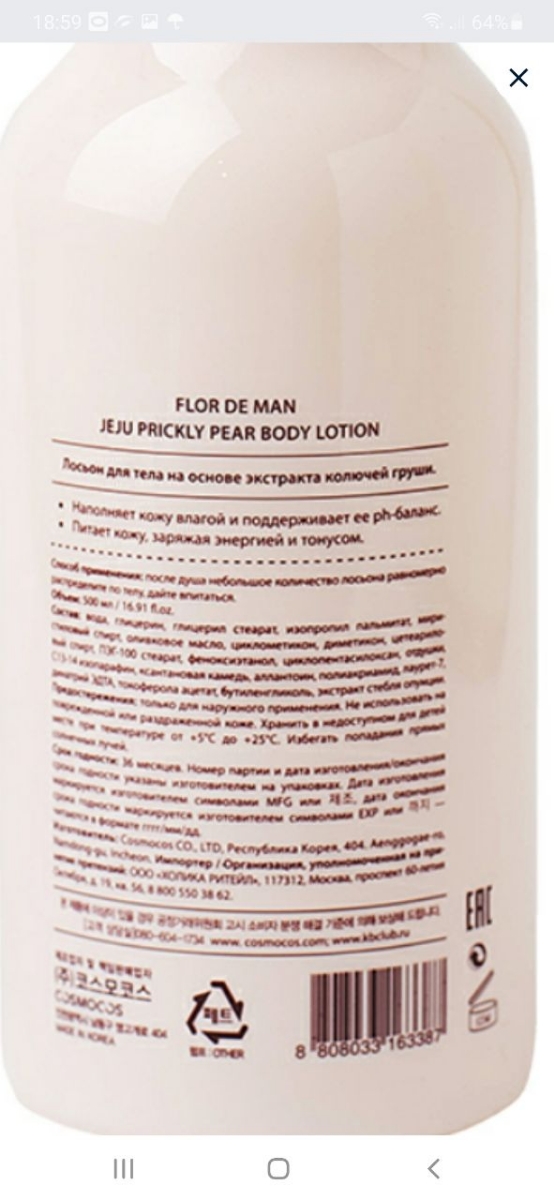 Flor de Man Увлажняющий лосьон для тела с кактусом Jeju Prickly Pear Body Lotion 500 мл