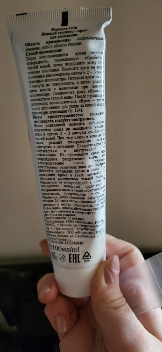 Floresan Нежный экспресс-крем для депиляции для чувствительной кожи с экстрактом ромашки 100 мл