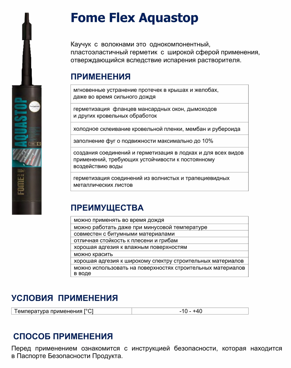 Герметик каучуковый для крыши, FOME FLEX, Aquastop, 300 мл