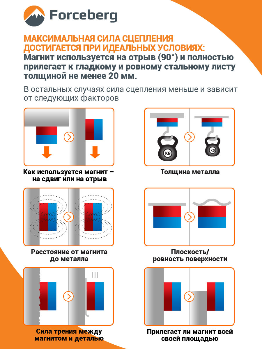 Поисковый магнит односторонний Forceberg F80, сила сц. 90 кг