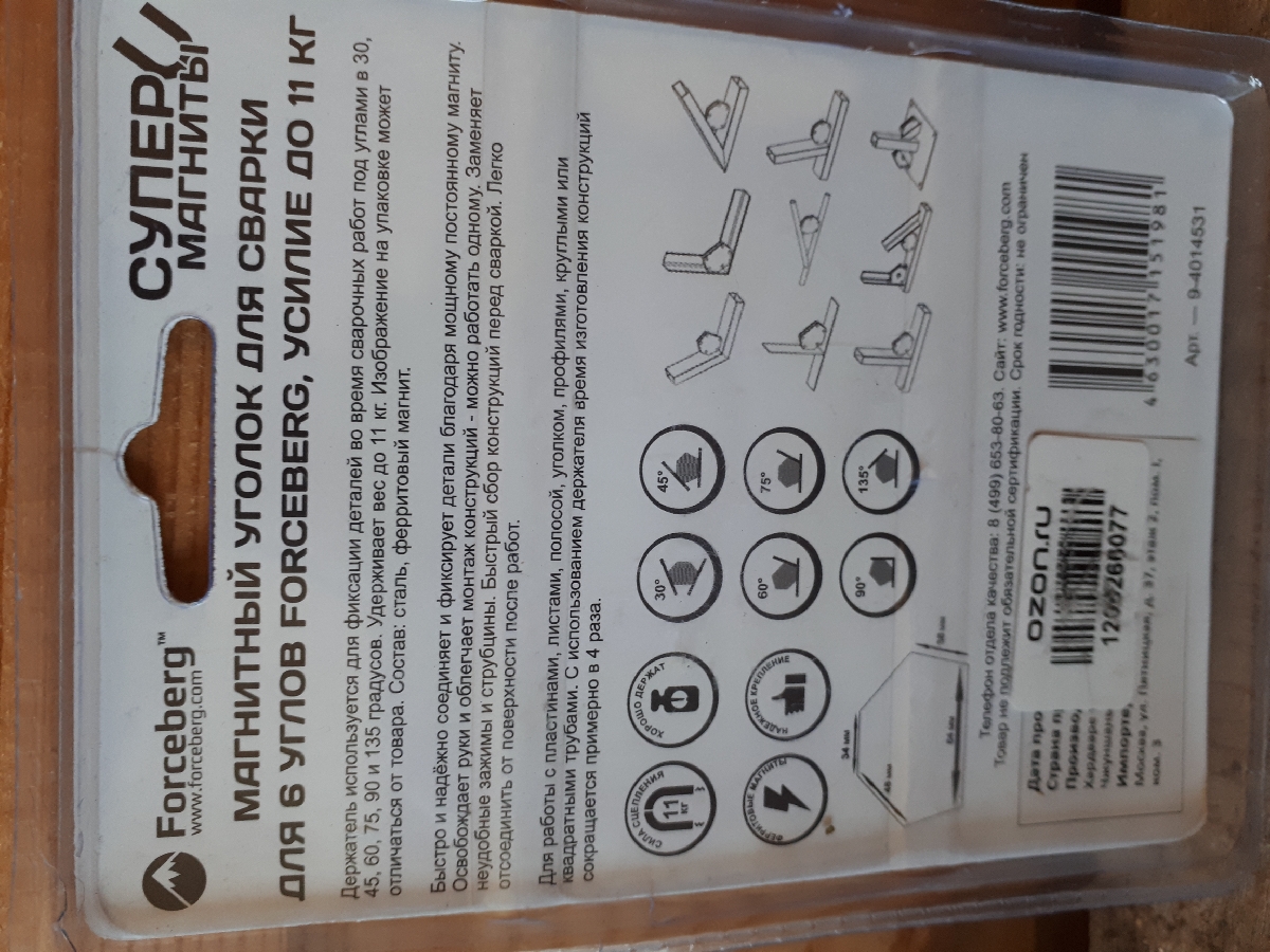 Магнитный угольник для сварки для 6 углов Forceberg, усилие до 23 кг
