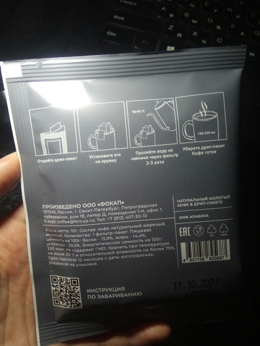 Кофе в дрип-пакетах FORCUP - GUATEMALA DECAF 8шт*11г