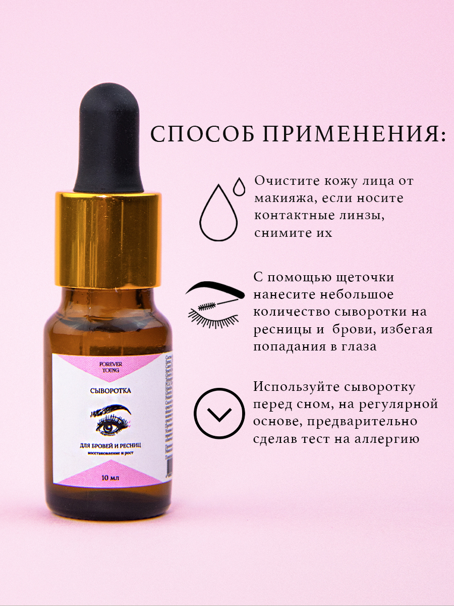 Forever Young, сыворотка для роста бровей и ресниц, сыворотка для укрепления бровей и ресниц, активация роста и объема бровей и ресниц, 10 мл.