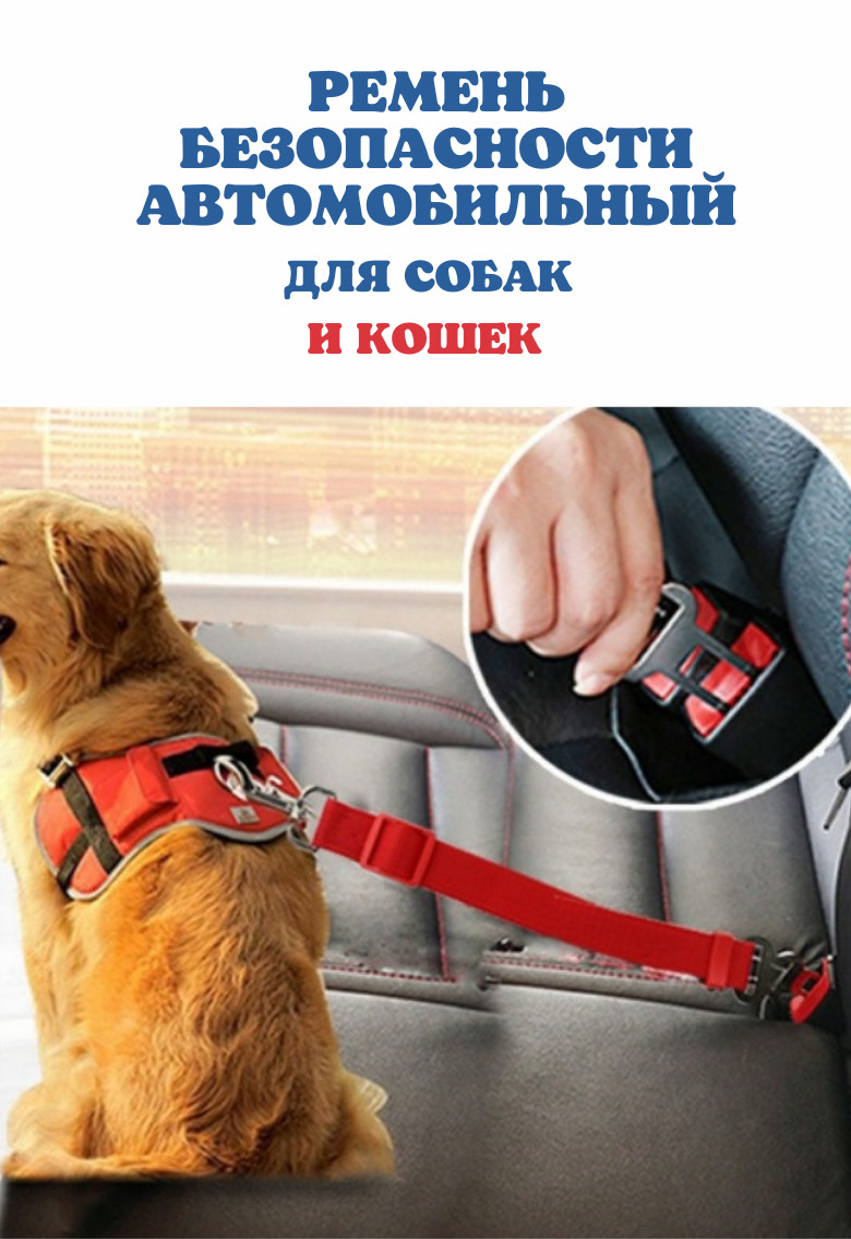 Ремень безопасности в машину для собак, кошек / поводок для животных в салон автомобиля / шлейка