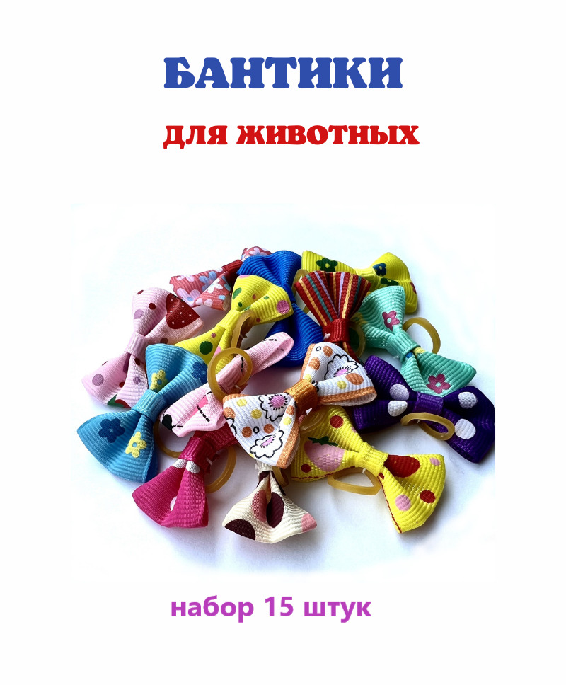 Бантики для собак; набор резинок бантиков для животных 15шт; резинки для собак; набор для груминга